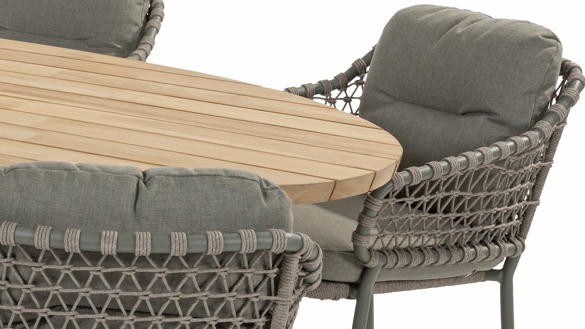 Ein Rope-Strang scheint weniger stark zu sein als ein Faden aus Geflecht. Dennoch sind die Rohstoffe für diese Materialien fast gleich. Die Dehnbarkeit ist minimal. 4 Seasons Outdoor-Gartenmöbel mit Rope sind für Personen geeignet mit einem Körpergewicht bis 110 kg. Es ist deshalb ein besonders starkes Material. Es ist jedoch wichtig, mit scharfen Gegenständen vorsichtig umzugehen. Unser 4SO-Rope ist wetterfest, ein scharfes Objekt kann Ihre Gartenmöbel jedoch beträchtlich beschädigen. Wir gewähren 5 Jahre Garantie auf Herstellungs- und Konstruktionsfehler. Sollte unverhofft eine Beschädigung auftreten, ist diese meistens reparierbar. Kontaktieren Sie in diesem Fall Ihren Händler.