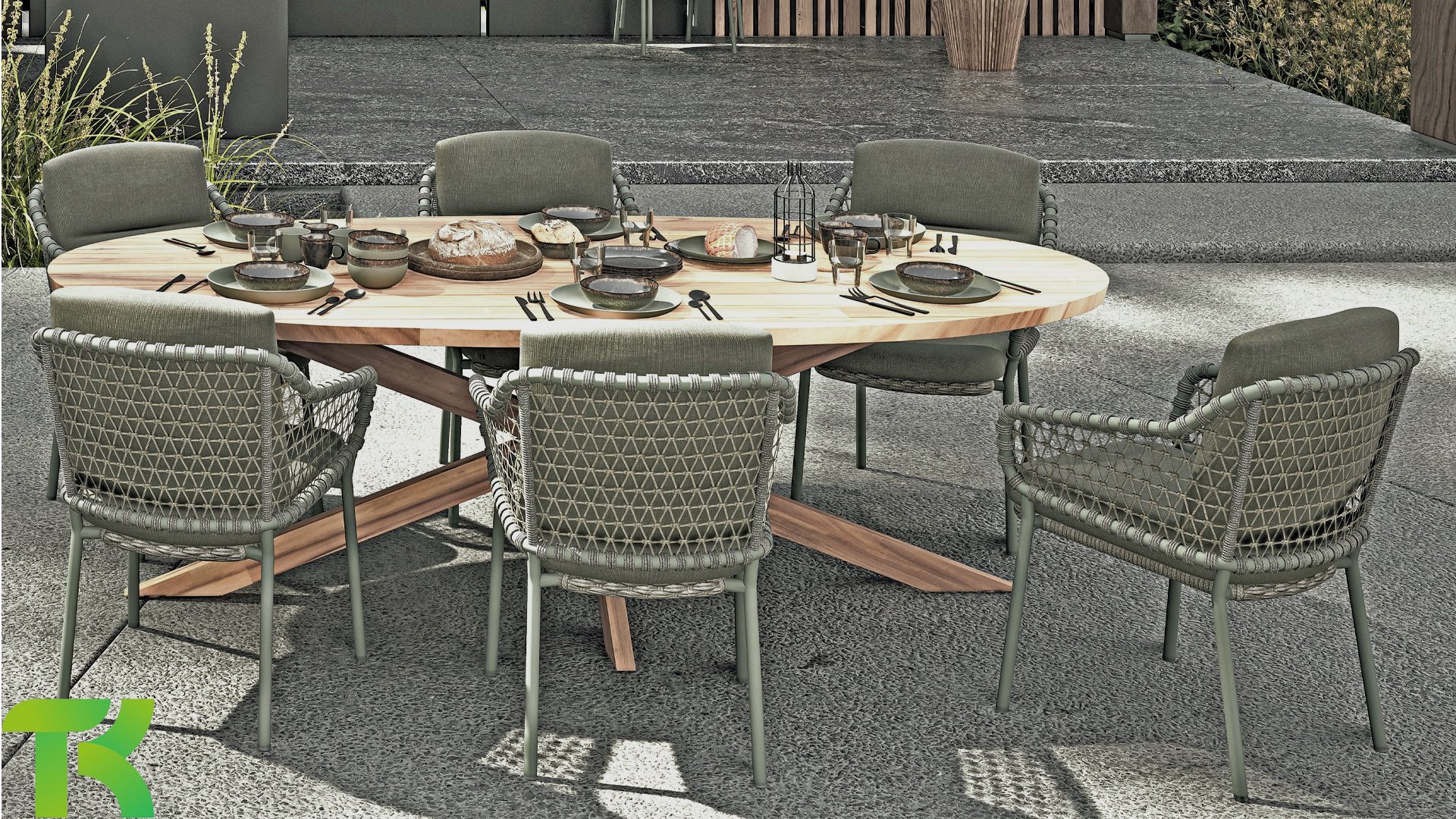 1 x Taste Prado Ellips Tisch 240x115cm Teak-Teak
