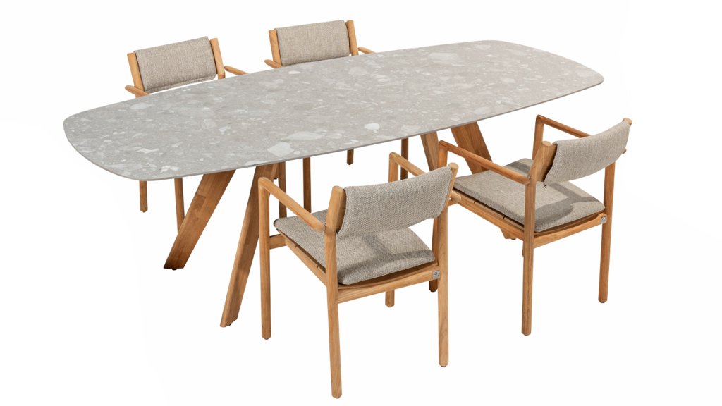 1 x 4Seasons Outdoor Montana Tisch 240x103cm Teak Ceramic Terrazzo