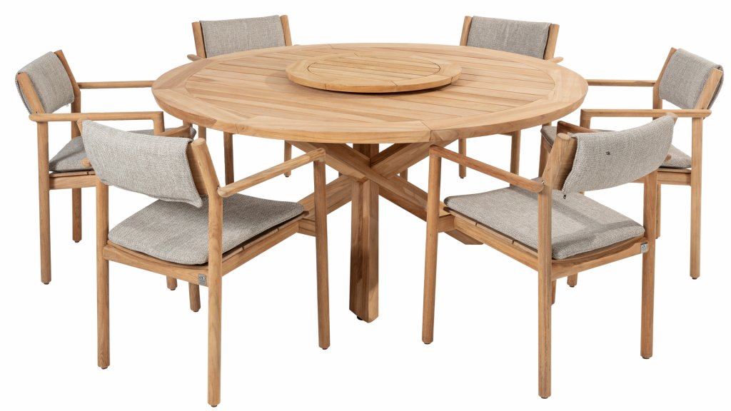 Gartenmöbel aus Teakholz bieten einen atemberaubenden Blick.Teakholz eignet sich besonders gut für den Einsatz im Außenbereich. Es ist resistent gegen Schädlinge und Pilze und widerstandsfähig gegen Sonne, Regen und Schnee. Mit der Zeit entwickelt das Teakholz eine silbergraue Patina. Gartenmöbel aus Teakholz bieten einen atemberaubenden Blick. Darüber hinaus ist es starkes Material und erfordert nur wenig Wartung. Wer die ursprüngliche Farbe des Teakholzes bevorzugt, kann durch regelmäßiges benutzen unser Pflegemittel ganz einfach das Vergrauen des Holzes verhindern.Darüber hinaus können Sie Teak mit grüner Seife reinigen. Durch Temperaturunterschiede und durch den Wechsel von Feuchtigkeit und Trockenheit können kleine Haarrisse entstehen. Es ist üblich, dass Man in dies Unvollkommenheiten findet, diese Unregelmäßigkeiten sind kennzeichnend für dieses Produkt. Diese Unregelmäßigkeiten können nie einen Anlass zu Reklamation, Garantie oder Claim formen. Es betrifft eine Unterschrift von Originalität!  Wir gewähren Garantie auf alle Produktions- und Konstruktionsfehler. Die Wirkung von Teakholz ist nicht enthalten. Wenn Sie sich für Teakholz entscheiden, erwarten wir, dass Sie diese Eigenschaften zu schätzen wissen. Eventuell auftretende Haarrisse, Äste im Teakholz und raue Oberflächen im Laufe der Zeit fallen nicht unter unsere Garantie. Diese Eigenschaften verleihen dem Teakholz seinen eigenen Charakter und sind Teil der Optik. Seien Sie vorsichtig mit einem Blumentopf oder einer Vase auf Ihrem Gartentisch aus Teakholz, da dies zu hartnäckigen Kreisen oder Farbunterschieden führen kann.