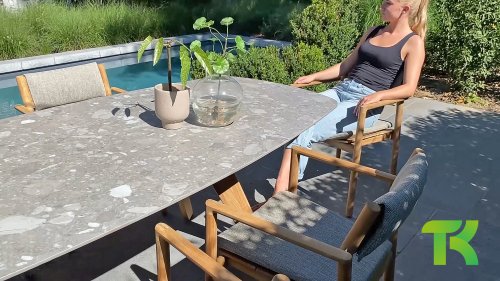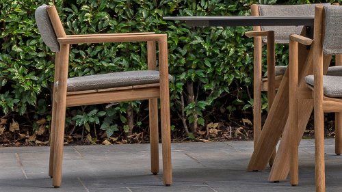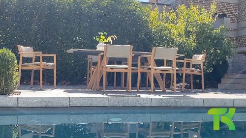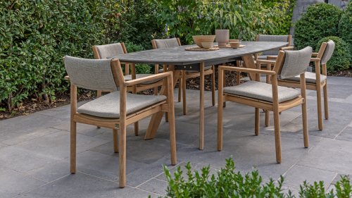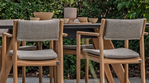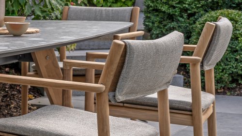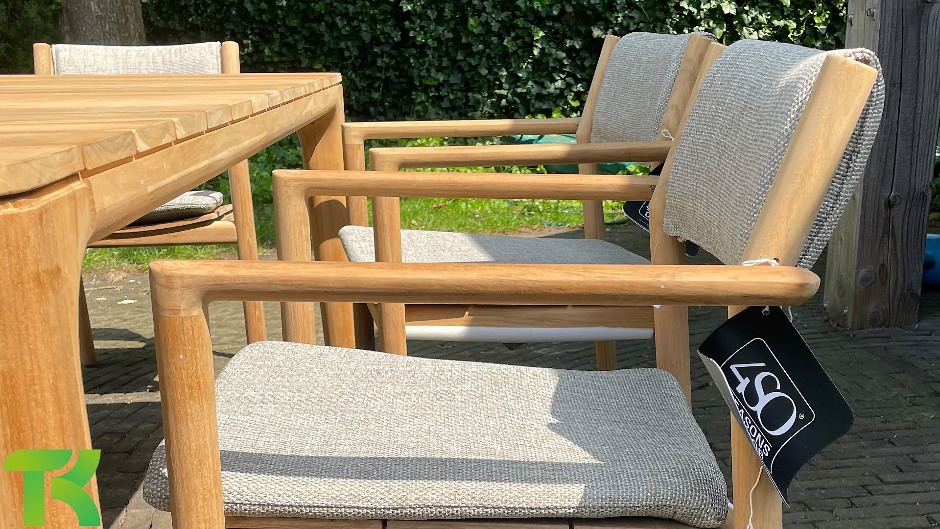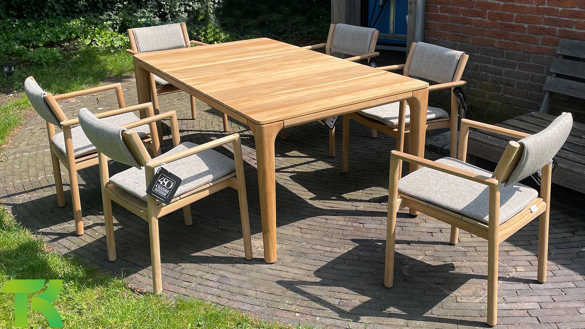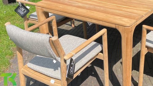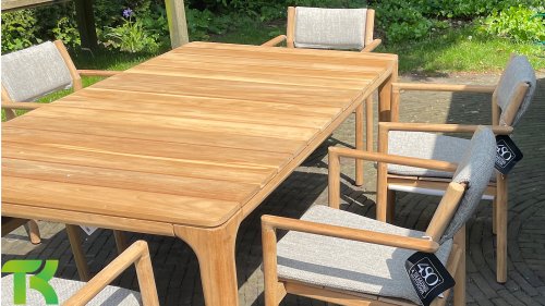 Gartenmöbel aus Teakholz bieten einen atemberaubenden Blick.Teakholz eignet sich besonders gut für den Einsatz im Außenbereich. Es ist resistent gegen Schädlinge und Pilze und widerstandsfähig gegen Sonne, Regen und Schnee. Mit der Zeit entwickelt das Teakholz eine silbergraue Patina. Gartenmöbel aus Teakholz bieten einen atemberaubenden Blick. Darüber hinaus ist es starkes Material und erfordert nur wenig Wartung. Wer die ursprüngliche Farbe des Teakholzes bevorzugt, kann durch regelmäßiges benutzen unser Pflegemittel ganz einfach das Vergrauen des Holzes verhindern.Darüber hinaus können Sie Teak mit grüner Seife reinigen. Durch Temperaturunterschiede und durch den Wechsel von Feuchtigkeit und Trockenheit können kleine Haarrisse entstehen. Es ist üblich, dass Man in dies Unvollkommenheiten findet, diese Unregelmäßigkeiten sind kennzeichnend für dieses Produkt. Diese Unregelmäßigkeiten können nie einen Anlass zu Reklamation, Garantie oder Claim formen. Es betrifft eine Unterschrift von Originalität!  Wir gewähren Garantie auf alle Produktions- und Konstruktionsfehler. Die Wirkung von Teakholz ist nicht enthalten. Wenn Sie sich für Teakholz entscheiden, erwarten wir, dass Sie diese Eigenschaften zu schätzen wissen. Eventuell auftretende Haarrisse, Äste im Teakholz und raue Oberflächen im Laufe der Zeit fallen nicht unter unsere Garantie. Diese Eigenschaften verleihen dem Teakholz seinen eigenen Charakter und sind Teil der Optik. Seien Sie vorsichtig mit einem Blumentopf oder einer Vase auf Ihrem Gartentisch aus Teakholz, da dies zu hartnäckigen Kreisen oder Farbunterschieden führen kann.