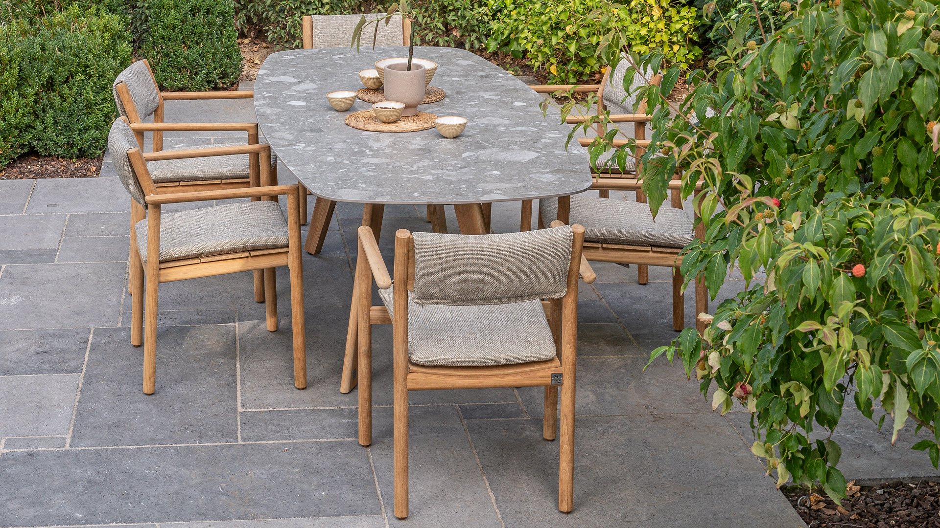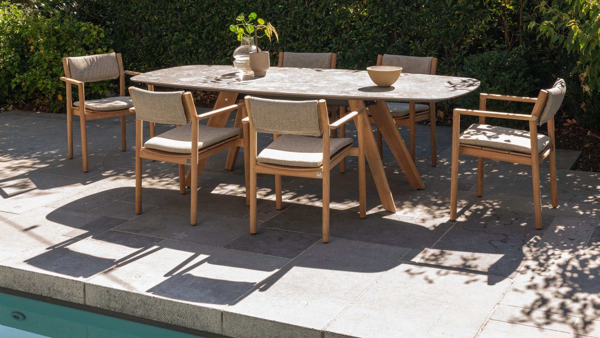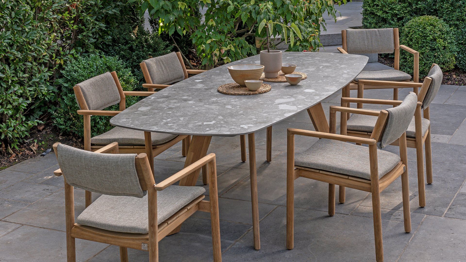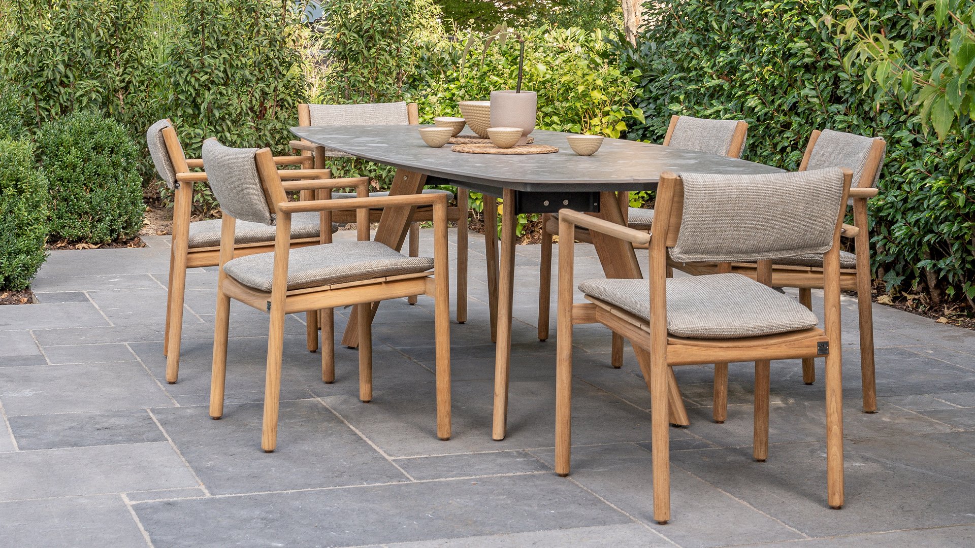 Gartenmöbel aus Teakholz bieten einen atemberaubenden Blick.Teakholz eignet sich besonders gut für den Einsatz im Außenbereich. Es ist resistent gegen Schädlinge und Pilze und widerstandsfähig gegen Sonne, Regen und Schnee. Mit der Zeit entwickelt das Teakholz eine silbergraue Patina. Gartenmöbel aus Teakholz bieten einen atemberaubenden Blick. Darüber hinaus ist es starkes Material und erfordert nur wenig Wartung. Wer die ursprüngliche Farbe des Teakholzes bevorzugt, kann durch regelmäßiges benutzen unser Pflegemittel ganz einfach das Vergrauen des Holzes verhindern.Darüber hinaus können Sie Teak mit grüner Seife reinigen. Durch Temperaturunterschiede und durch den Wechsel von Feuchtigkeit und Trockenheit können kleine Haarrisse entstehen. Es ist üblich, dass Man in dies Unvollkommenheiten findet, diese Unregelmäßigkeiten sind kennzeichnend für dieses Produkt. Diese Unregelmäßigkeiten können nie einen Anlass zu Reklamation, Garantie oder Claim formen. Es betrifft eine Unterschrift von Originalität!  Wir gewähren Garantie auf alle Produktions- und Konstruktionsfehler. Die Wirkung von Teakholz ist nicht enthalten. Wenn Sie sich für Teakholz entscheiden, erwarten wir, dass Sie diese Eigenschaften zu schätzen wissen. Eventuell auftretende Haarrisse, Äste im Teakholz und raue Oberflächen im Laufe der Zeit fallen nicht unter unsere Garantie. Diese Eigenschaften verleihen dem Teakholz seinen eigenen Charakter und sind Teil der Optik. Seien Sie vorsichtig mit einem Blumentopf oder einer Vase auf Ihrem Gartentisch aus Teakholz, da dies zu hartnäckigen Kreisen oder Farbunterschieden führen kann.
