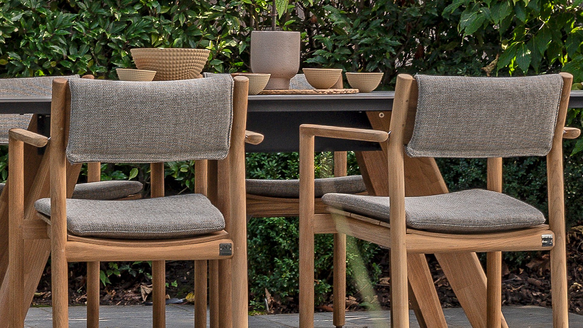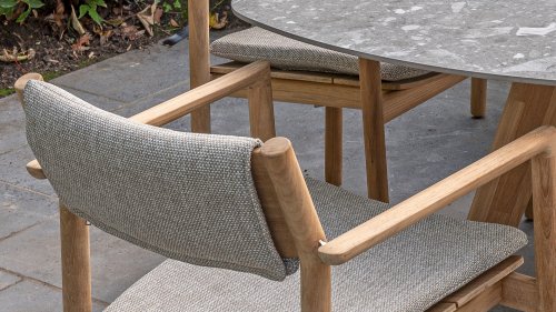 Es gibt so viel zu entdecken! Die kunstvolle Fertigung dieses Levi-Esszimmerstuhls zeugt von großem Können. Ein Teakholzstuhl zum Verlieben – einfach wunderschön. Mit passenden Kissen und der Möglichkeit zum Stapeln ist der Levi eines der Prunkstücke unserer Kollektion. Der 4 Seasons Outdoor Levi Stapelbare Dining Stuhl vereint Stil und Funktionalität auf elegante Weise und ist die perfekte Ergänzung für Ihren Außenbereich. Ein edler Stuhl, meisterhaft aus erstklassigem Teakholz gefertigt, mit überraschendem Komfort dank Details wie dem bequemen Sitzkissen und der abnehmbaren Rückenlehne.