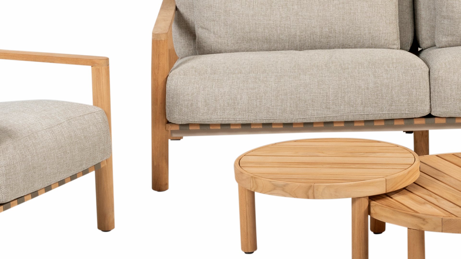 Natürliches Aussehen: Das Teakholz verleiht der Lounge ein warmes und natürliches Aussehen, das sich perfekt in verschiedene Außenumgebungen einfügt.