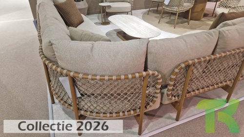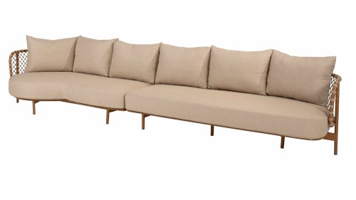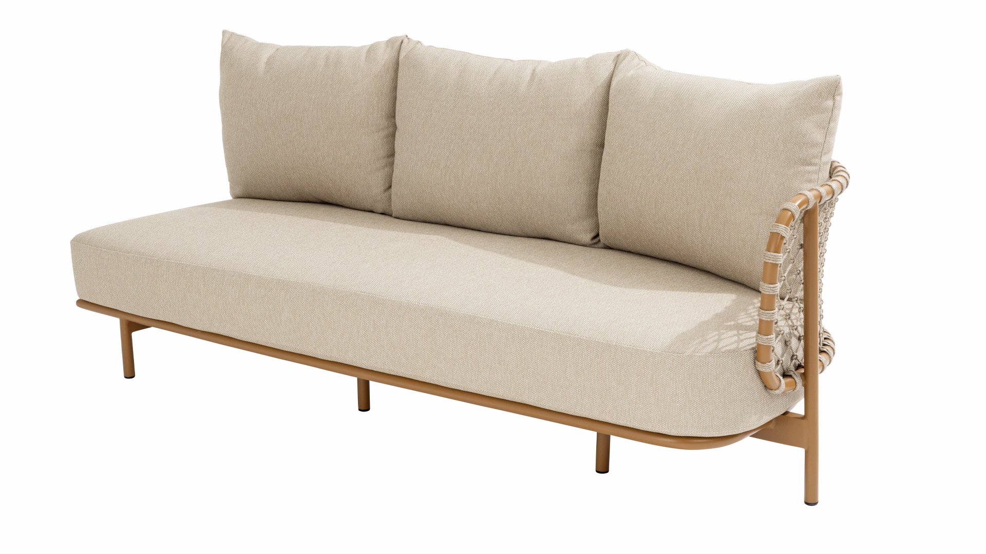 Das offen gewebte Seildesign in warmen Bernsteintönen verleiht der Martinique Lounge einen luftigen, modernen Look. Die abgerundeten Ecken der Elemente und die tiefen, weichen Kissen laden zum stilvollen Entspannen ein. Die natürliche, sandfarbene Polsterung passt perfekt zu einer ruhigen, harmonischen Outdoor-Umgebung.