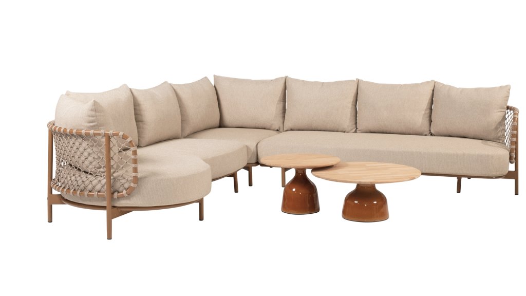 Erleben Sie zeitlosen Luxus mit der Martinique Loungegruppe von 4 Seasons Outdoor. Das auffällige geknotete Rope-Design verleiht einen spielerischen, aber raffinierten Charakter, während der bernsteinfarbene Rahmen Wärme und Ambiente in Ihren Garten oder Ihre Terrasse bringt. Dieses Set ist perfekt für alle, die eine Kombination aus Stil und Komfort suchen.