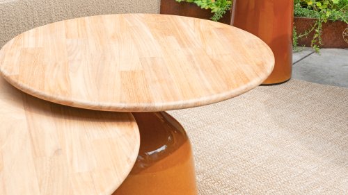 Die 4 Seasons Outdoor Couchtischserie June ist eine Ode an raffinierte Schlichtheit und natürlichen Luxus. Mit einer abgerundeten Teakholzplatte und einem markanten Hochglanz-Keramikfuß vereint June Wärme und einen modernen Touch in einem kraftvollen Design.