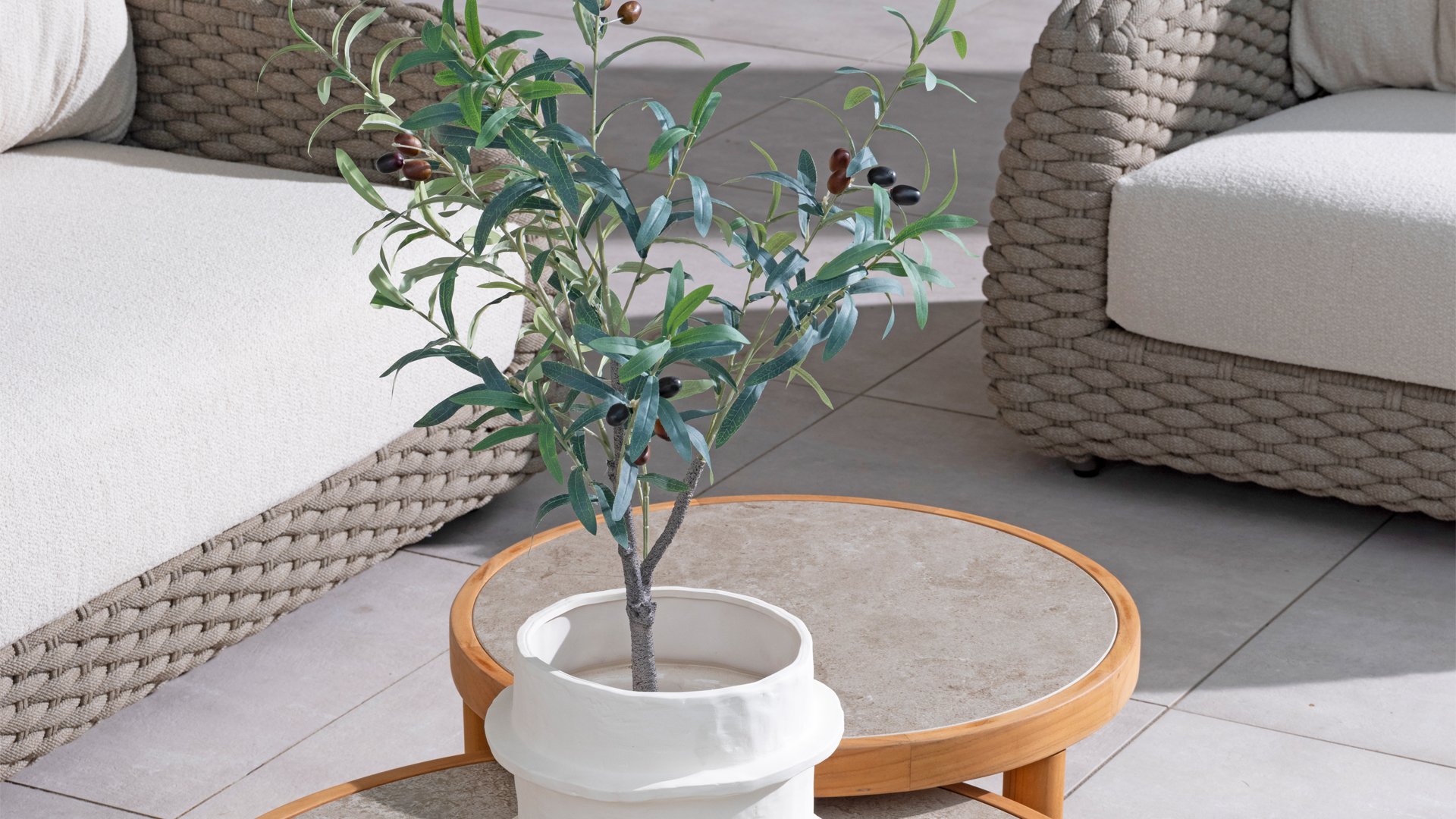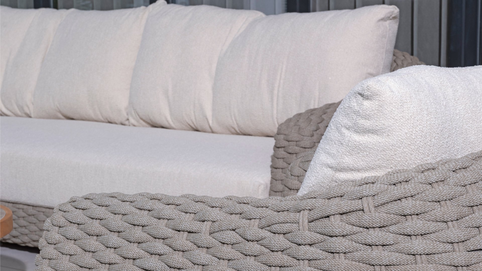 Ich liebe Maxime. Mit Maxime richten Sie Ihre luxuriöse Terrasse wunderschön ein, denn diese vollständig gewebte, üppige Loungeserie ist ein Augenschmaus mit ihrem wunderschönen organischen Design. Die dicken Loungekissen aus cremefarbenem Bouclé-Stoff sorgen für totale Entspannung. Wählen Sie Ihre ideale Konfiguration und genießen Sie Ihren luxuriösen Garten.