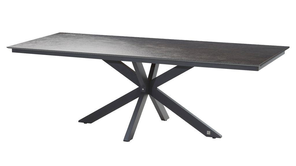 4 Seasons Outdoor Minerva besteht aus einem kunstvoll gestalteten Kreuzfußgestell in Kombination mit verschiedenen Platten. Der Tisch ist in den Größen 220 und 280 Zentimeter erhältlich. Durch sein pulverbeschichtetes Gestell eignet sich der Tisch hervorragend für den Außenbereich. Der Tisch kann mit folgenden Platten kombiniert werden: