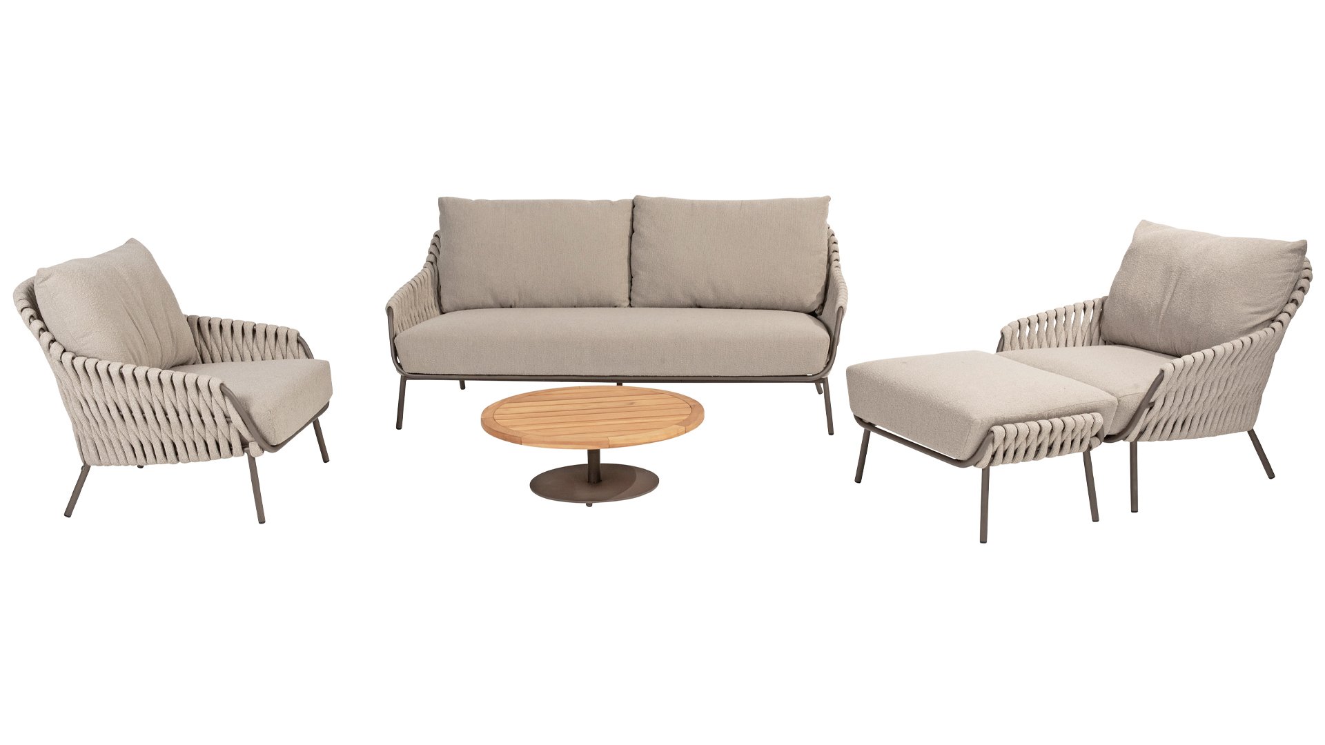 Lernen Sie das 4 Seasons Outdoor Montera loungeset kennen. Hergestellt mit einem Edelstahlrahmen in der neuen Farbe Terre. Der Seilfaden sowie die Kissen sind in der Farbe Clay gehalten, die Polsterung der Kissen ist zur Abwechslung einmal Boucle! So sieht es nicht nur schick aus, sondern auch schön, trendig und verspielt.