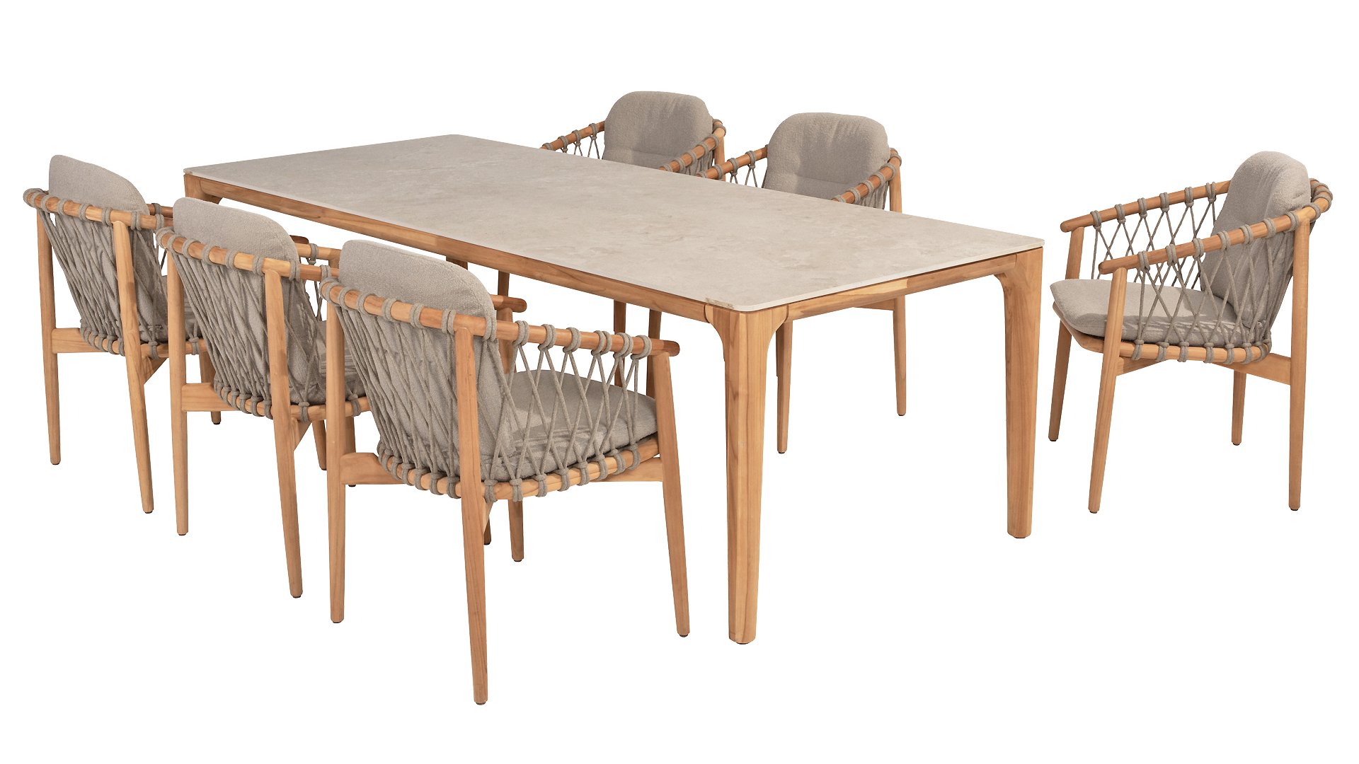 Der Liam 240 cm Keramik ist mit einer großzügigen Größe von 240 x 100 x 75 cm eine schöne Ergänzung für jeden Essbereich. Der Rahmen aus Teakholz bietet eine warme, natürliche Optik und sorgt für Stabilität und Langlebigkeit. Teakholz eignet sich perfekt für den Langzeitgebrauch und hält unterschiedlichen Wetterbedingungen stand, sodass der Tisch sowohl für den Innen- als auch für den Außenbereich geeignet ist.