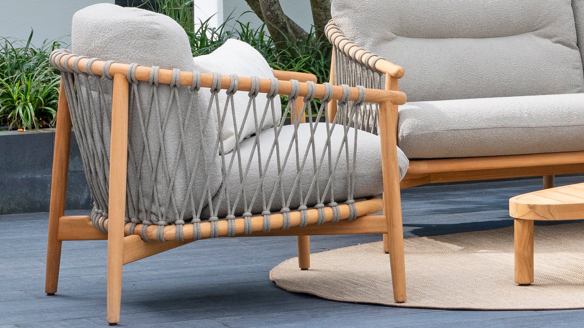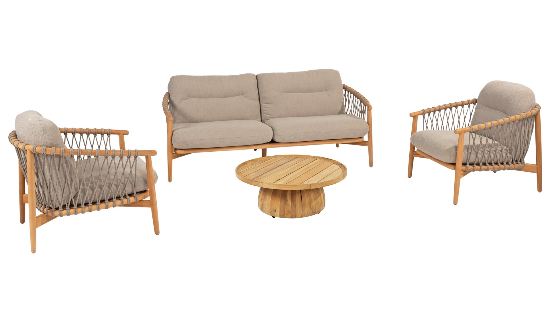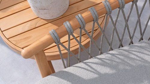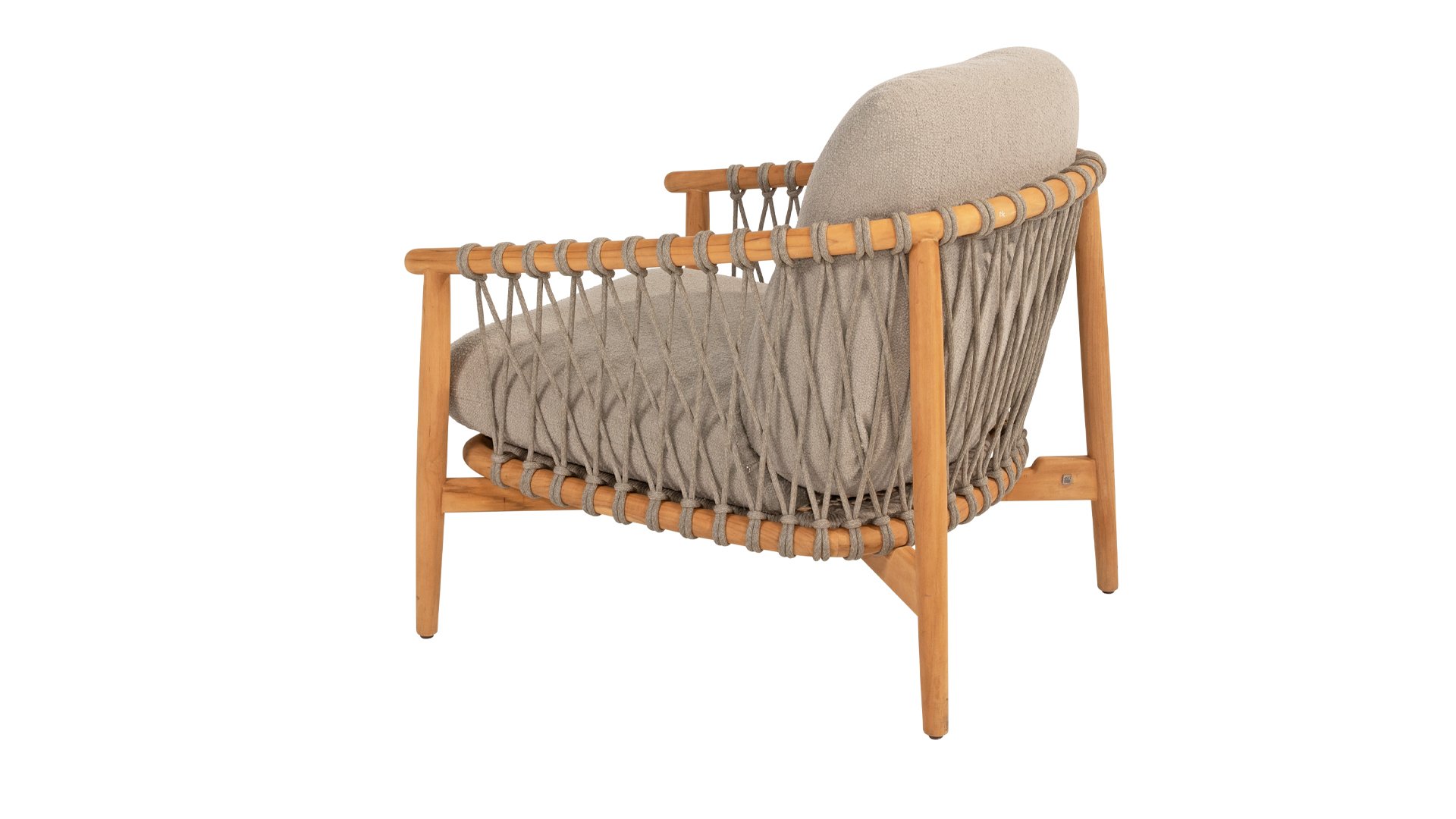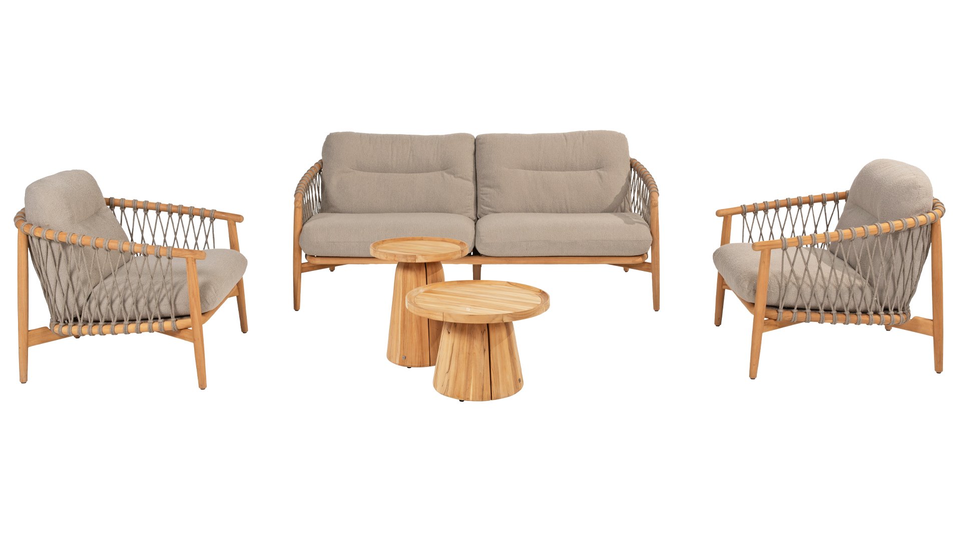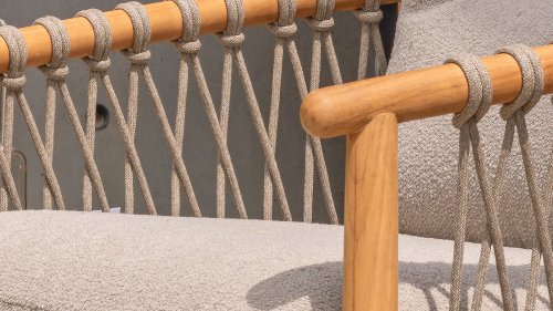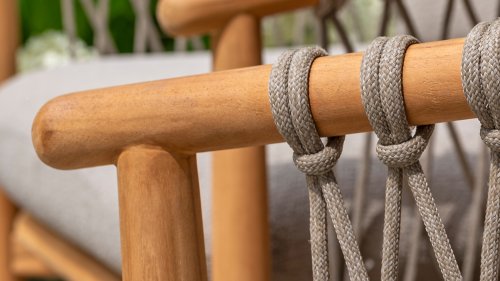 Entdecken Sie die perfekte Kombination aus Stil und Komfort mit der Nora Lounge von 4 Seasons Outdoor. Dieses Lounge-Set ist ein schönes Beispiel für Design bis ins letzte Detail, bei dem die ganze Leidenschaft in die Nora-Lounge-Serie eingeflossen ist. Das Teakholzgestell mit eleganten Kurven wird durch auffällige Seilmuster akzentuiert und macht diesen Stuhl zu einem echten Hingucker in Ihrem Außenbereich.