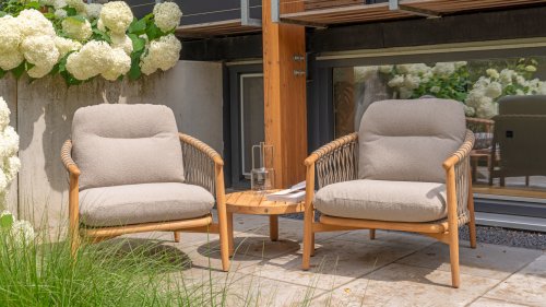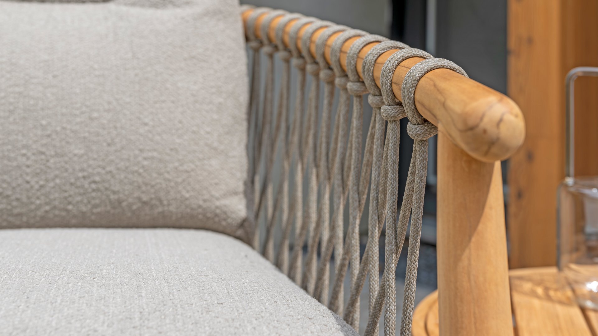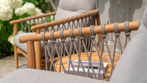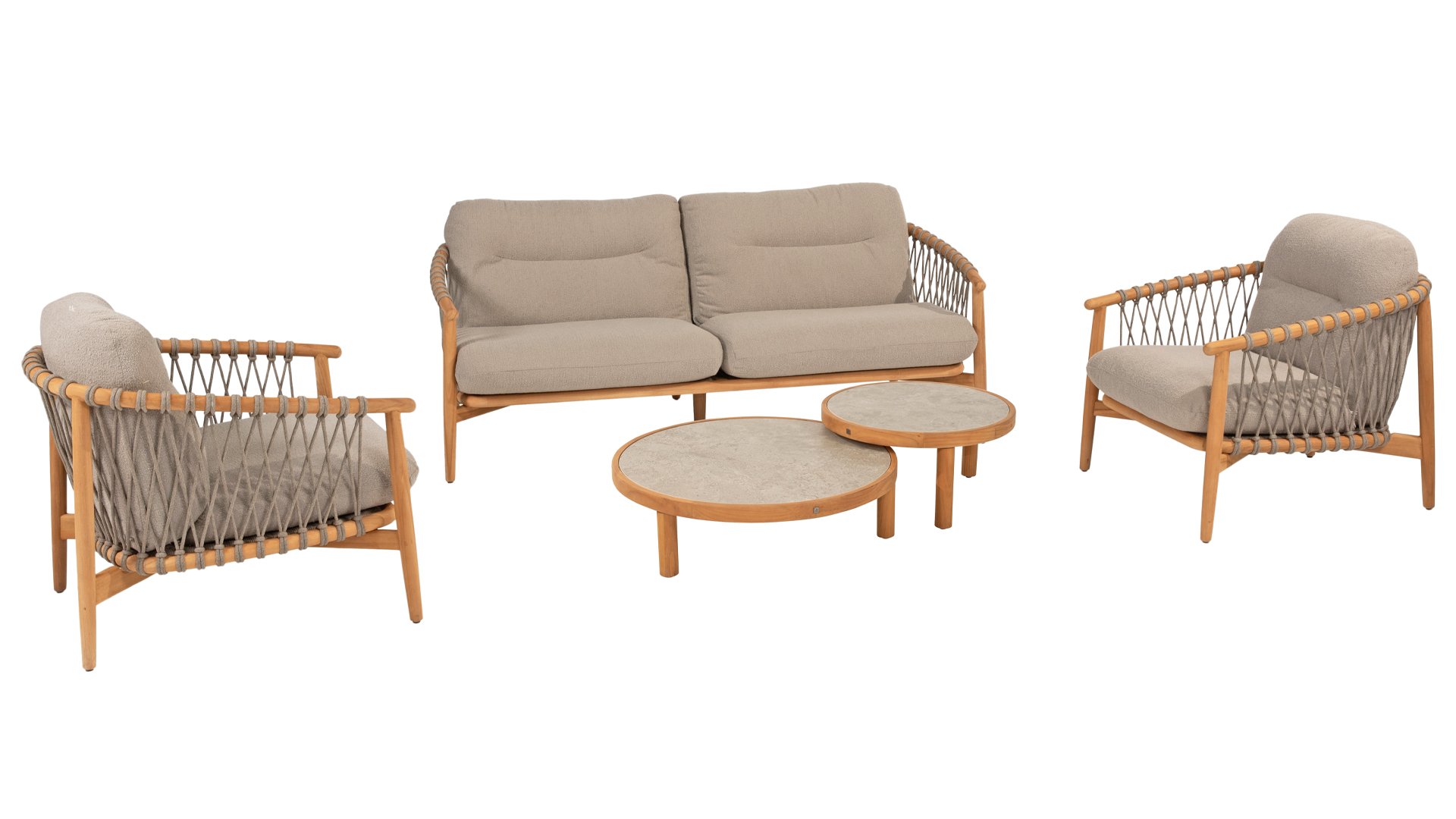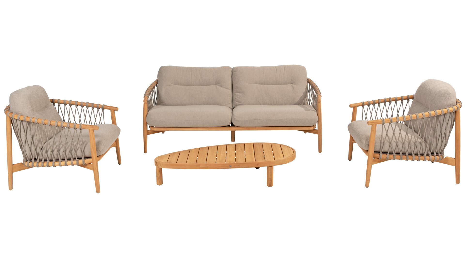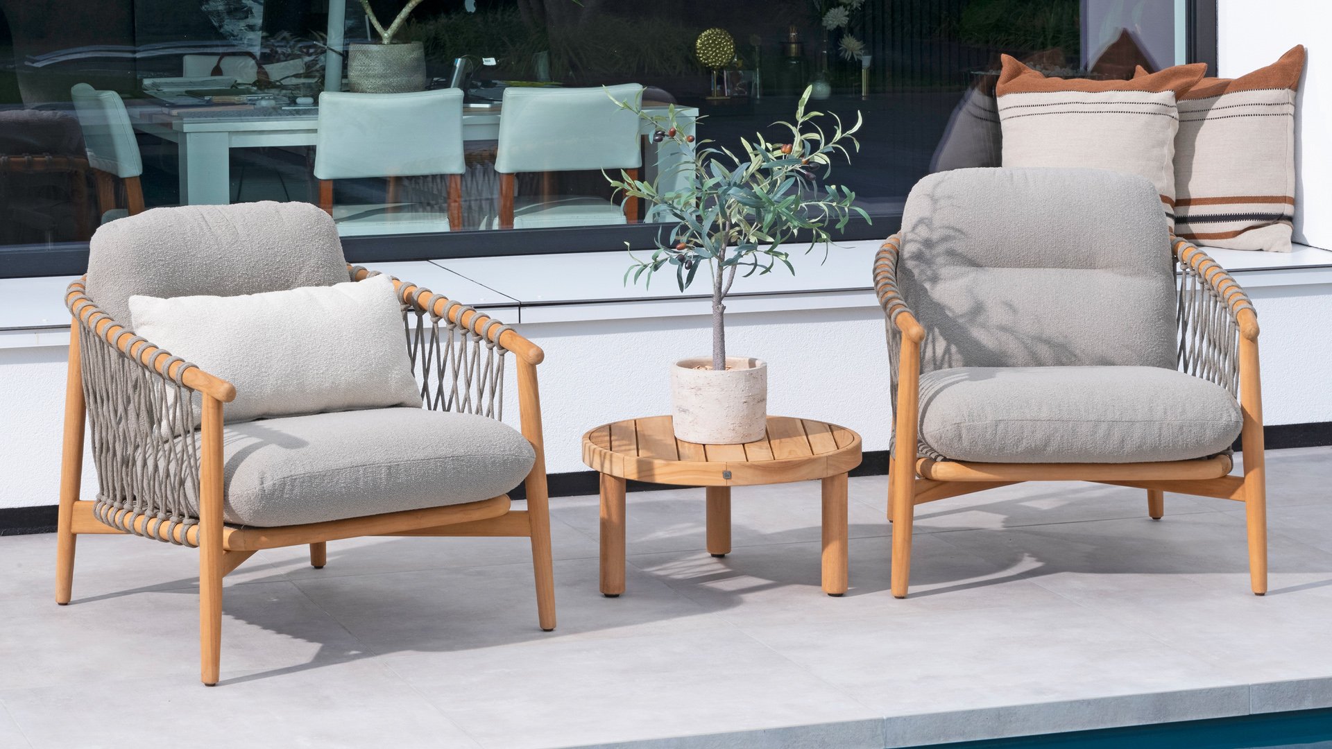 Entdecken Sie die perfekte Kombination aus Stil und Komfort mit der Nora Lounge von 4 Seasons Outdoor. Dieses Lounge-Set ist ein schönes Beispiel für Design bis ins letzte Detail, bei dem die ganze Leidenschaft in die Nora-Lounge-Serie eingeflossen ist. Das Teakholzgestell mit eleganten Kurven wird durch auffällige Seilmuster akzentuiert und macht diesen Stuhl zu einem echten Hingucker in Ihrem Außenbereich.