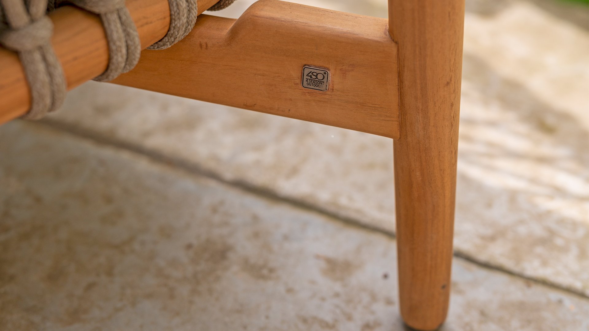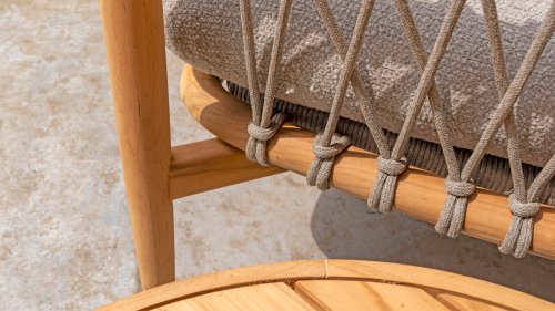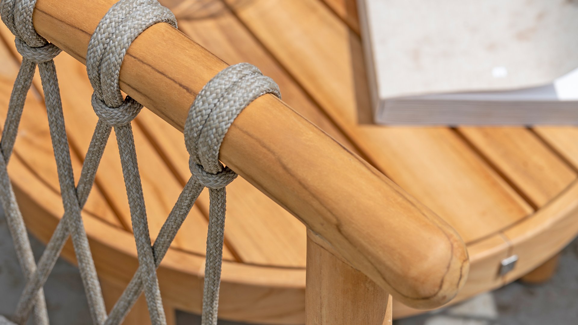 Einzigartiges Design: Die Kombination aus Teakholz und Seil verleiht dem Stuhl ein luxuriöses Aussehen, perfekt für jeden Garten oder jede Terrasse.