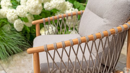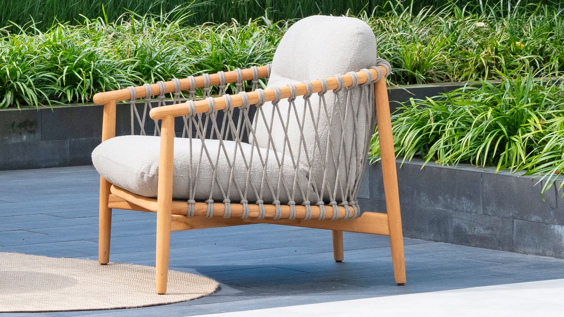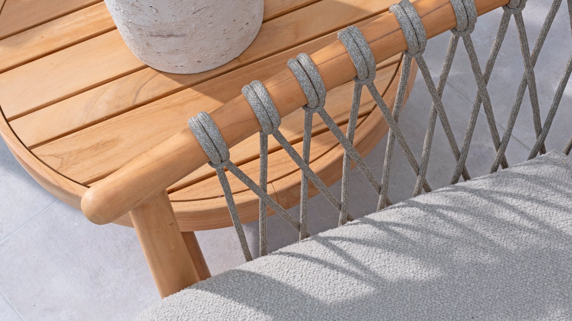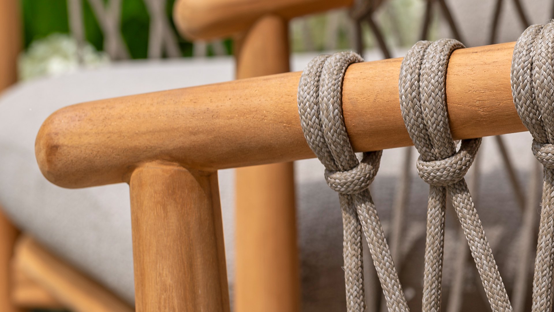 Einzigartiges Design: Die Kombination aus Teakholz und Seil verleiht dem Stuhl ein luxuriöses Aussehen, perfekt für jeden Garten oder jede Terrasse.
