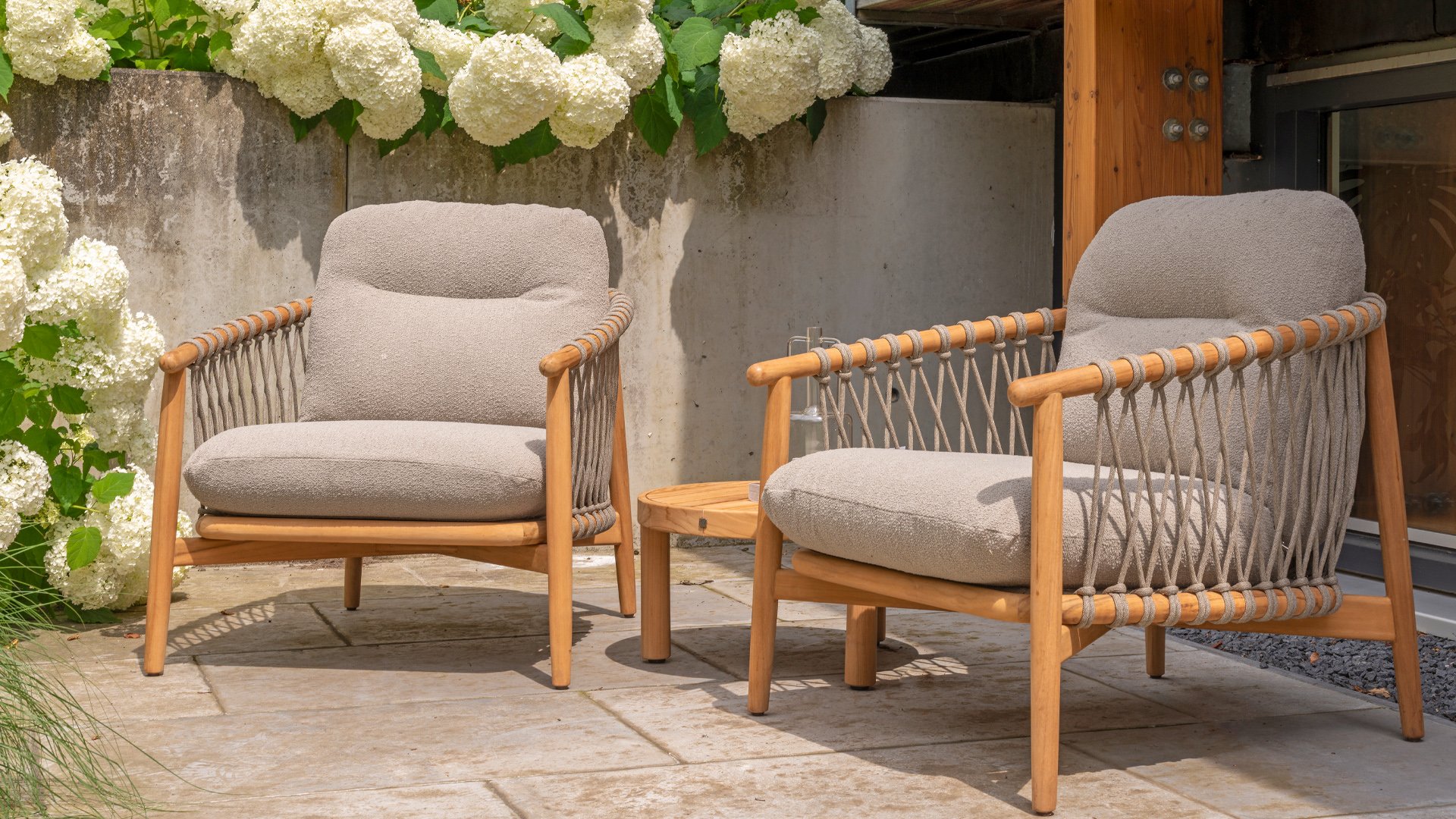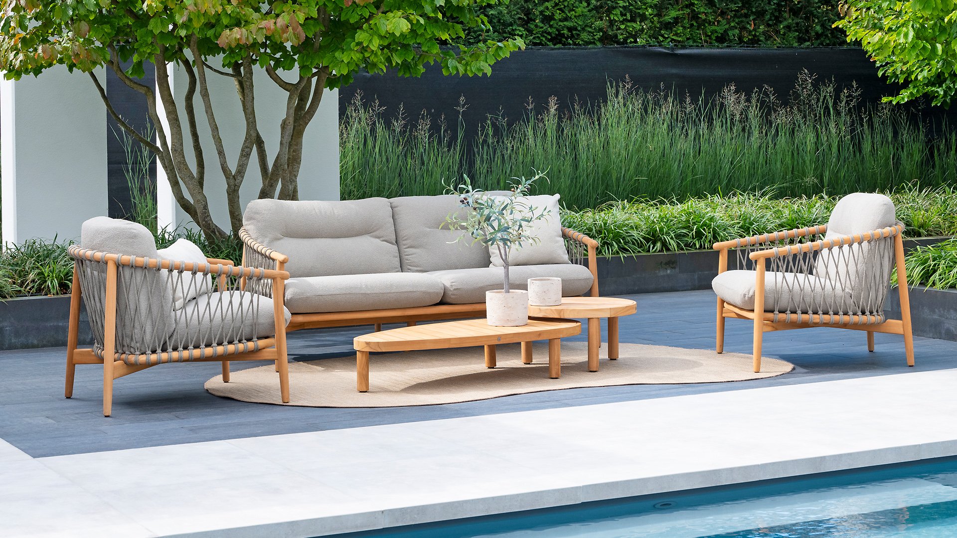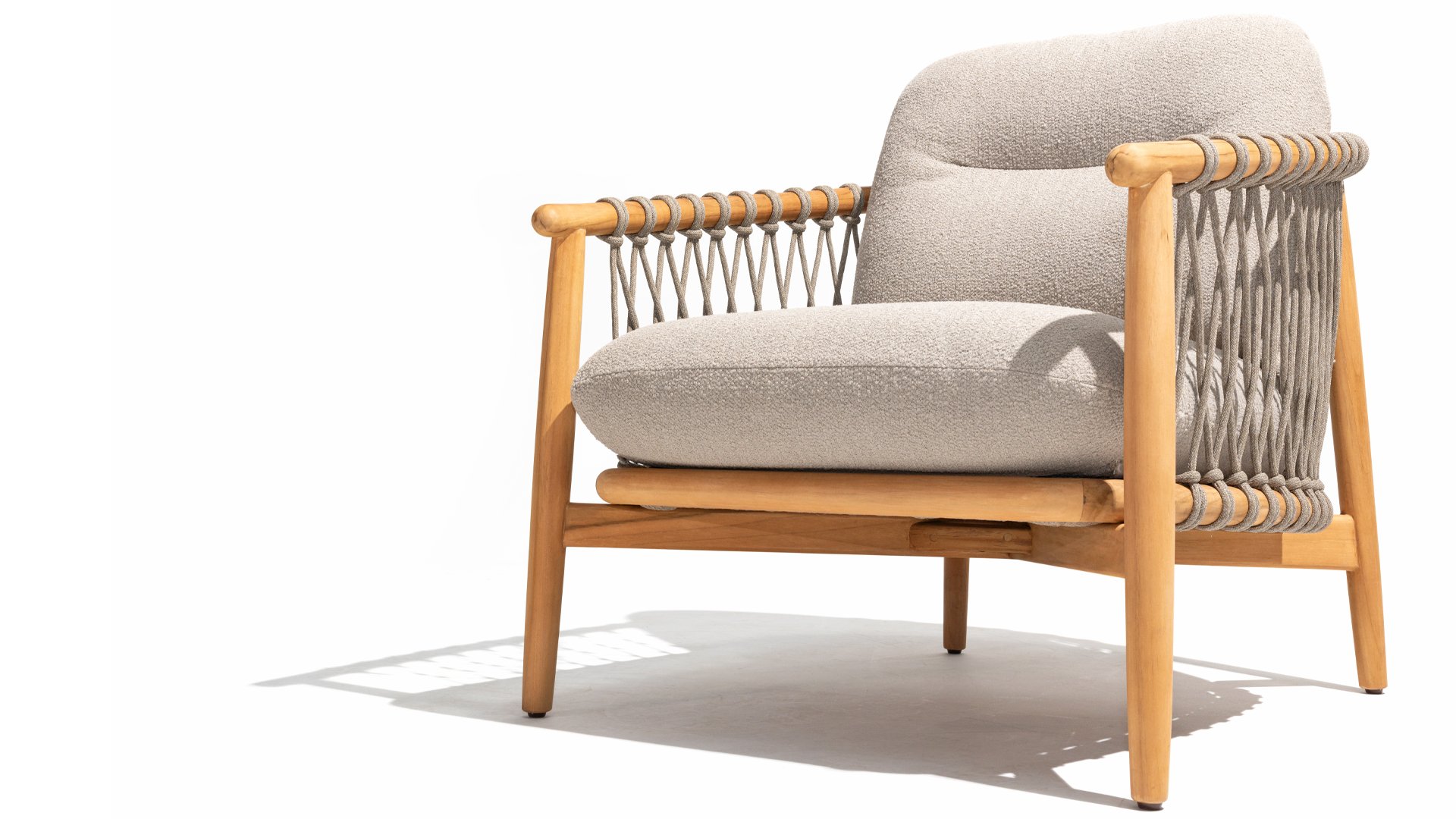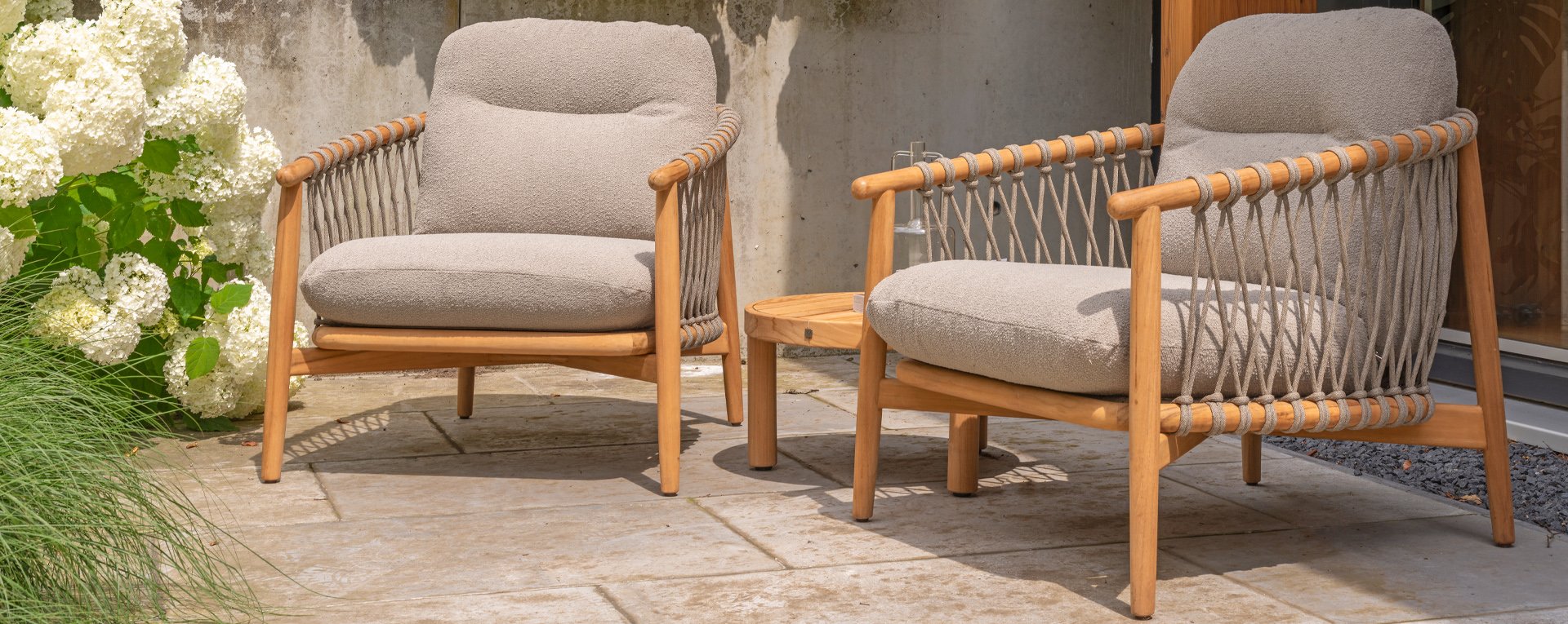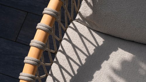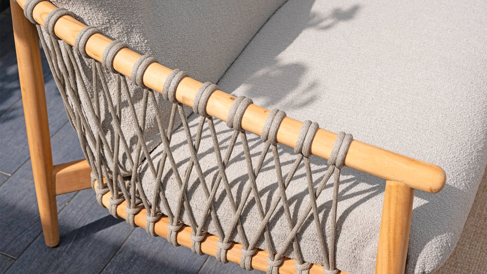 Natürliches, zeitloses Design. Die Nora-Serie von 4 Seasons Outdoor ist in vielerlei Hinsicht von unvergleichlicher Klasse. Wunderschöne Kurven in den Teakholzrahmen des Diningstühle und Loungesets sind mit einem offenen Ropemuster versehen. Wir haben dicke, weiche Kissen aus Bouclé-Stoff verarbeitet, die fantastischen Komfort bieten.