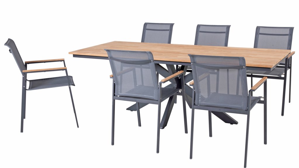 | Materialien Esstisch Sets | Pulverbeschichtet Aluminium/Stahl, Teak |