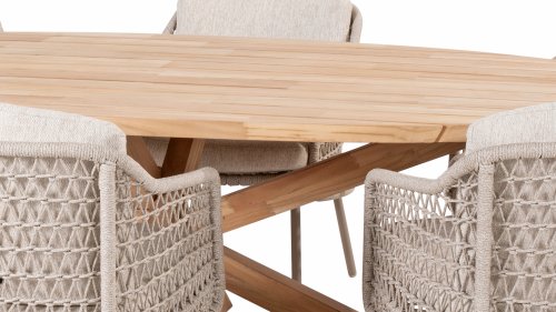 Gartenmöbel aus Teakholz bieten einen atemberaubenden Blick.Teakholz eignet sich besonders gut für den Einsatz im Außenbereich. Es ist resistent gegen Schädlinge und Pilze und widerstandsfähig gegen Sonne, Regen und Schnee. Mit der Zeit entwickelt das Teakholz eine silbergraue Patina. Gartenmöbel aus Teakholz bieten einen atemberaubenden Blick. Darüber hinaus ist es starkes Material und erfordert nur wenig Wartung. Wer die ursprüngliche Farbe des Teakholzes bevorzugt, kann durch regelmäßiges benutzen unser Pflegemittel ganz einfach das Vergrauen des Holzes verhindern.Darüber hinaus können Sie Teak mit grüner Seife reinigen. Durch Temperaturunterschiede und durch den Wechsel von Feuchtigkeit und Trockenheit können kleine Haarrisse entstehen. Es ist üblich, dass Man in dies Unvollkommenheiten findet, diese Unregelmäßigkeiten sind kennzeichnend für dieses Produkt. Diese Unregelmäßigkeiten können nie einen Anlass zu Reklamation, Garantie oder Claim formen. Es betrifft eine Unterschrift von Originalität! Wir gewähren Garantie auf alle Produktions- und Konstruktionsfehler. Die Wirkung von Teakholz ist nicht enthalten. Wenn Sie sich für Teakholz entscheiden, erwarten wir, dass Sie diese Eigenschaften zu schätzen wissen. Eventuell auftretende Haarrisse, Äste im Teakholz und raue Oberflächen im Laufe der Zeit fallen nicht unter unsere Garantie. Diese Eigenschaften verleihen dem Teakholz seinen eigenen Charakter und sind Teil der Optik. Seien Sie vorsichtig mit einem Blumentopf oder einer Vase auf Ihrem Gartentisch aus Teakholz, da dies zu hartnäckigen Kreisen oder Farbunterschieden führen kann.