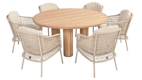 Gartenmöbel aus Teakholz bieten einen atemberaubenden Blick.Teakholz eignet sich besonders gut für den Einsatz im Außenbereich. Es ist resistent gegen Schädlinge und Pilze und widerstandsfähig gegen Sonne, Regen und Schnee. Mit der Zeit entwickelt das Teakholz eine silbergraue Patina. Gartenmöbel aus Teakholz bieten einen atemberaubenden Blick. Darüber hinaus ist es starkes Material und erfordert nur wenig Wartung. Wer die ursprüngliche Farbe des Teakholzes bevorzugt, kann durch regelmäßiges benutzen unser Pflegemittel ganz einfach das Vergrauen des Holzes verhindern.Darüber hinaus können Sie Teak mit grüner Seife reinigen. Durch Temperaturunterschiede und durch den Wechsel von Feuchtigkeit und Trockenheit können kleine Haarrisse entstehen. Es ist üblich, dass Man in dies Unvollkommenheiten findet, diese Unregelmäßigkeiten sind kennzeichnend für dieses Produkt. Diese Unregelmäßigkeiten können nie einen Anlass zu Reklamation, Garantie oder Claim formen. Es betrifft eine Unterschrift von Originalität!  Wir gewähren Garantie auf alle Produktions- und Konstruktionsfehler. Die Wirkung von Teakholz ist nicht enthalten. Wenn Sie sich für Teakholz entscheiden, erwarten wir, dass Sie diese Eigenschaften zu schätzen wissen. Eventuell auftretende Haarrisse, Äste im Teakholz und raue Oberflächen im Laufe der Zeit fallen nicht unter unsere Garantie. Diese Eigenschaften verleihen dem Teakholz seinen eigenen Charakter und sind Teil der Optik. Seien Sie vorsichtig mit einem Blumentopf oder einer Vase auf Ihrem Gartentisch aus Teakholz, da dies zu hartnäckigen Kreisen oder Farbunterschieden führen kann.