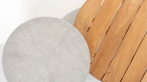 Mortex besteht aus einer Mischung aus Kalk, Zement und feinen Mineralpulvern. Pigmente und Harze werden dieser Mischung zugesetzt, um sie flexibel, wasserfest und haftfest zu machen. Sie wird von Hand in dünnen Schichten aufgetragen, anschließend geschliffen und mit einer Schutzversiegelung oder Wachs versiegelt. So entsteht eine nahtlose, robuste und stilvolle Oberfläche, die sich unter anderem für Möbel, Böden und Wände eignet. Ein Mortex-Gartentisch ist wetterfest. Regen, Sonnenlicht und Temperaturschwankungen können dem Material kaum etwas anhaben, sofern der Tisch ordnungsgemäß mit einer Schutzschicht versehen ist. Vorsicht ist jedoch bei säurehaltigen Substanzen wie Zitronensaft, Essig oder Wein geboten. Bleiben diese zu lange auf der Oberfläche, können sie die Schutzschicht beschädigen und Flecken verursachen.