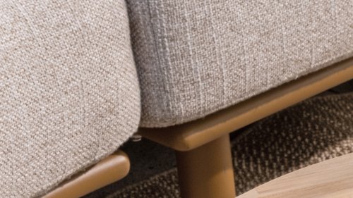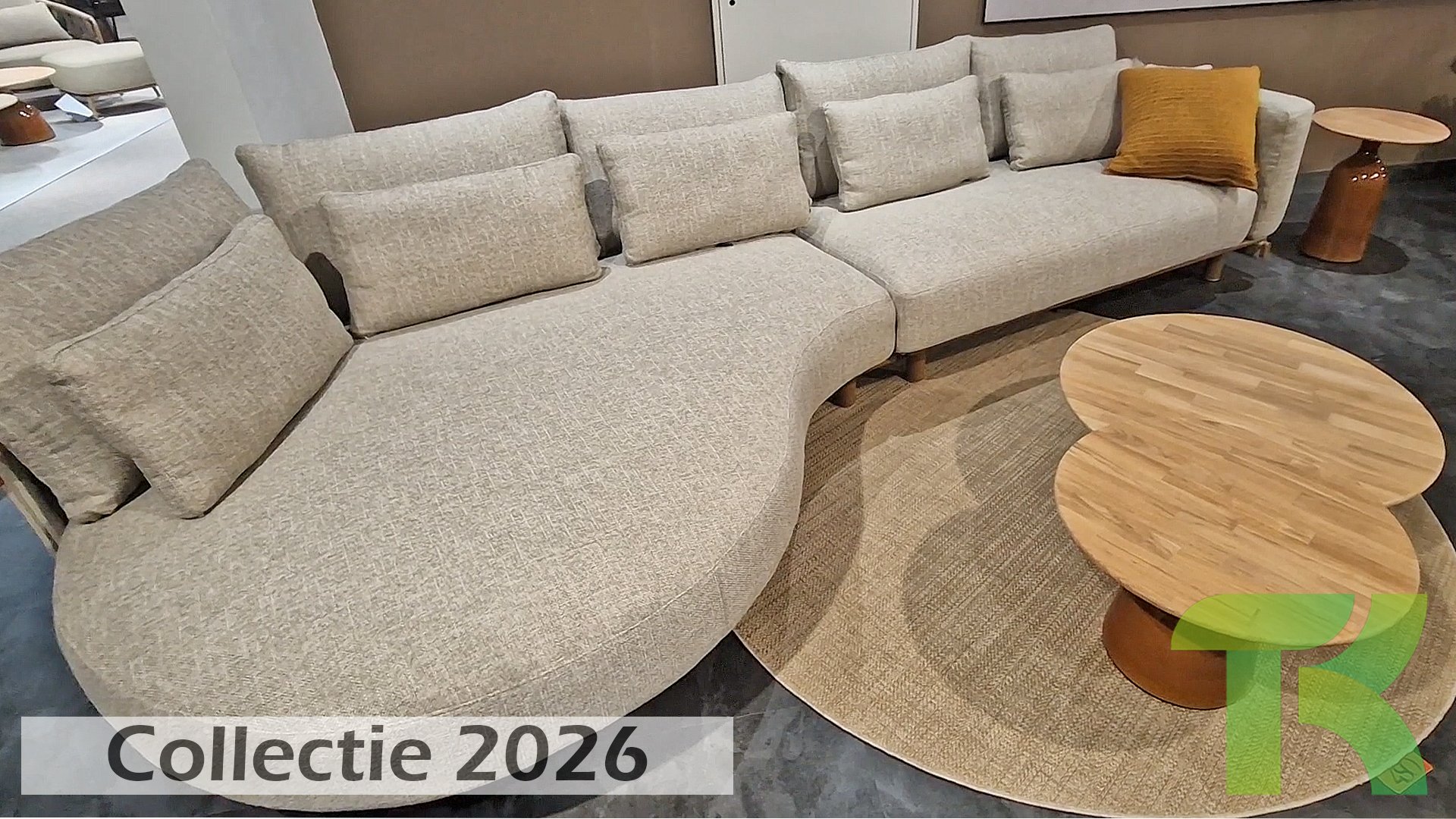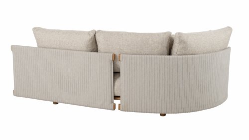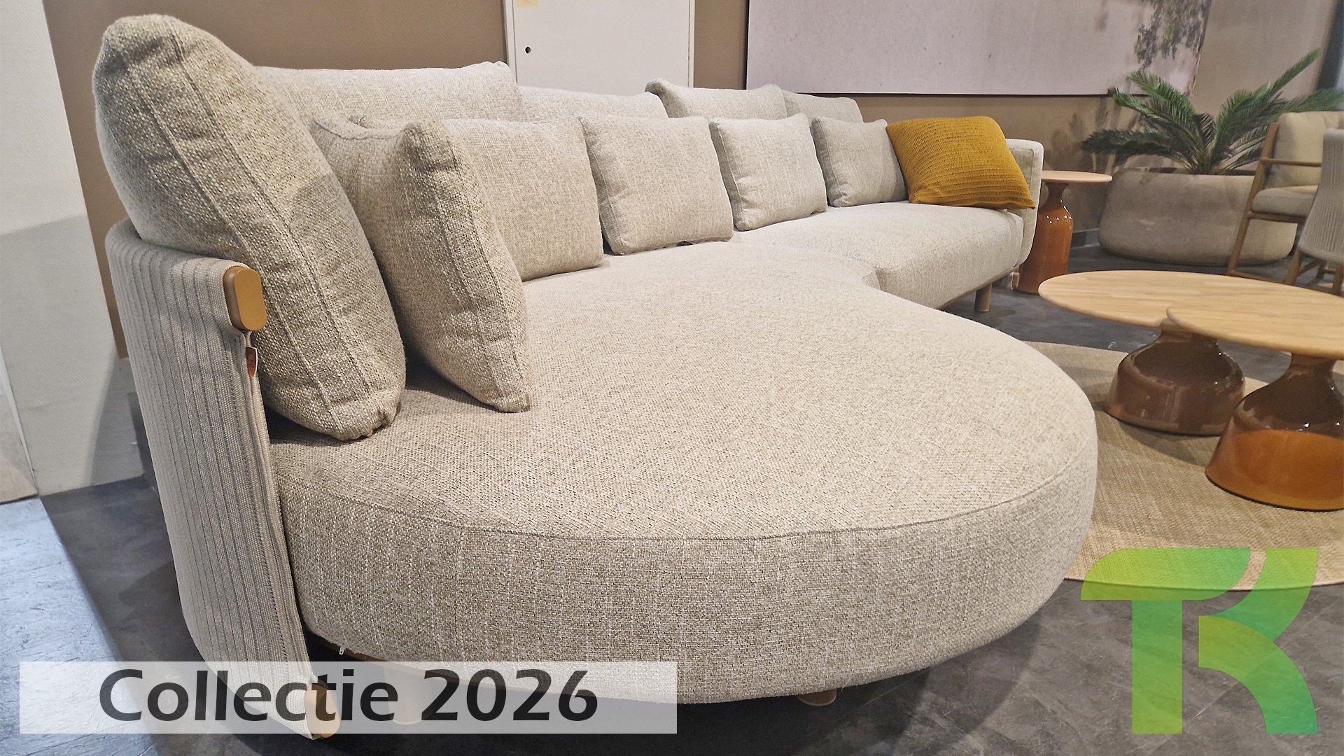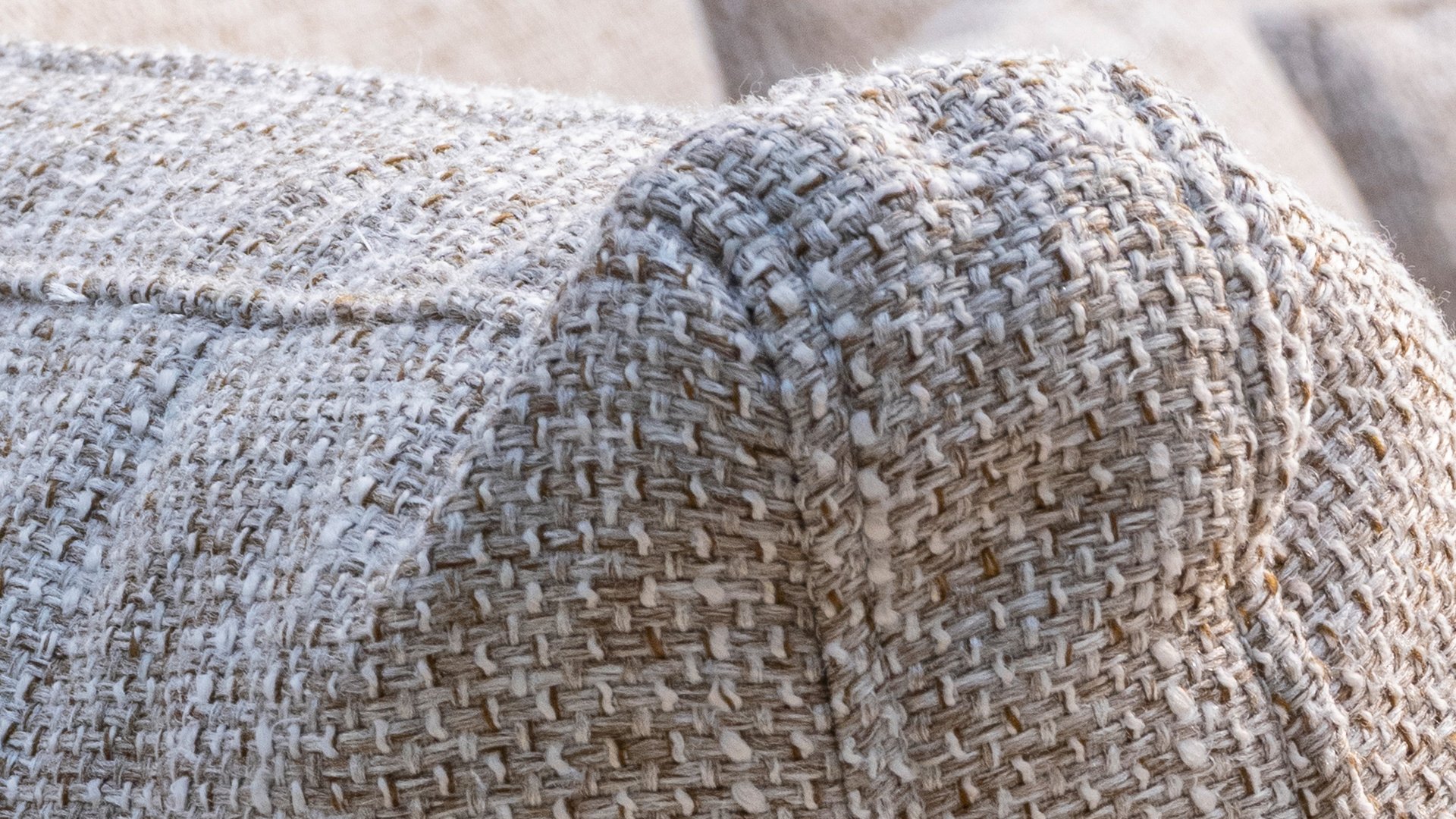 * Harmonische Farbpalette mit weichen, sandfarbenen Kissen.