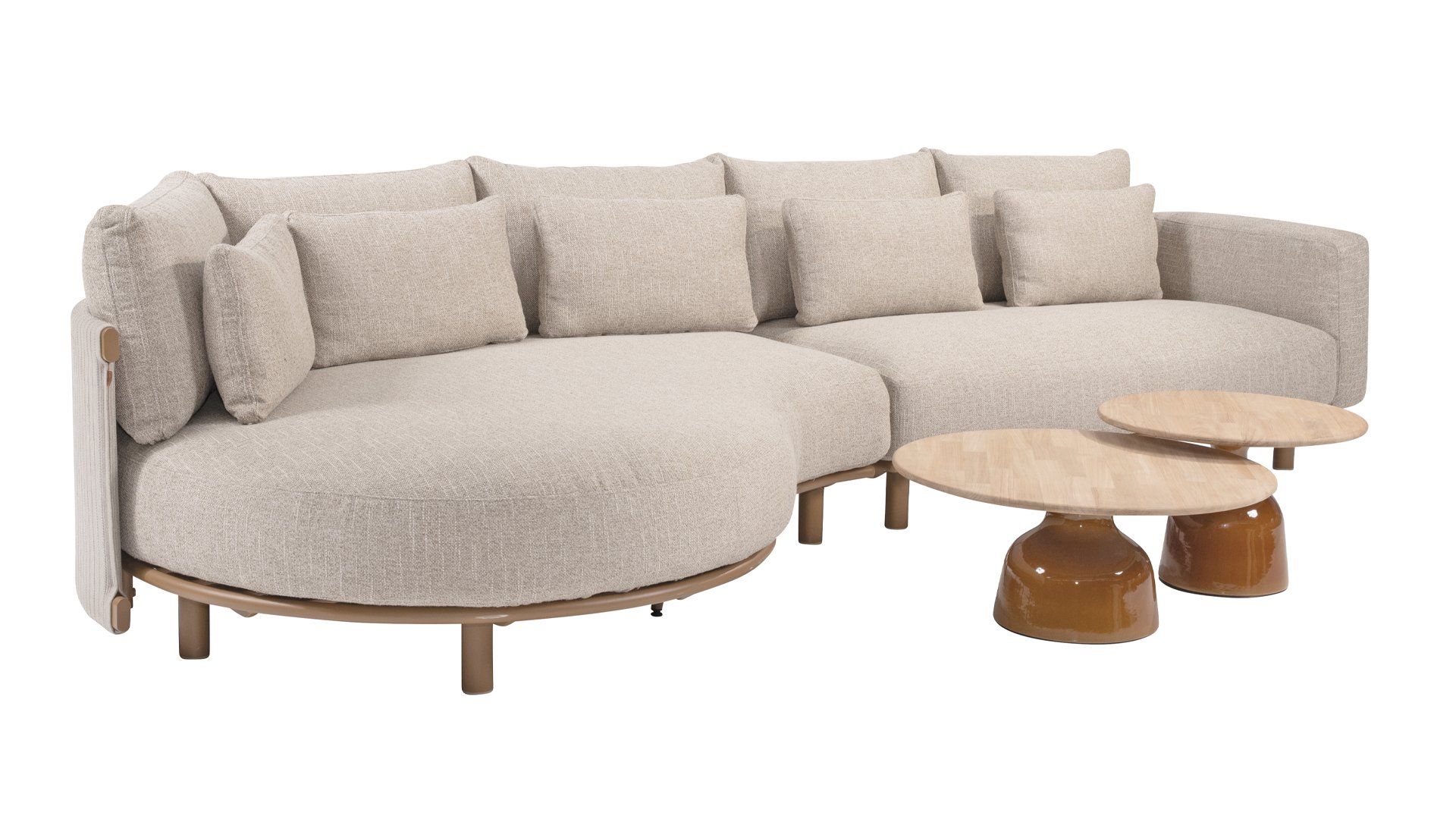 Das sandfarbene Rope ist vollständig gepolstert und mit außergewöhnlicher Handwerkskunst verarbeitet, was dem Safina Lounge-Set eine warme und luxuriöse Ausstrahlung verleiht. Der amber Aluminiumrahmen bildet eine moderne, robuste und pflegeleichte Basis. Zusammen mit den sandfarbenen Kissen – wetterfest, komfortabel und stilvoll – entsteht ein harmonisches und hochwertiges Gesamtbild, das perfekt zu jedem Garten oder jeder Terrasse passt.