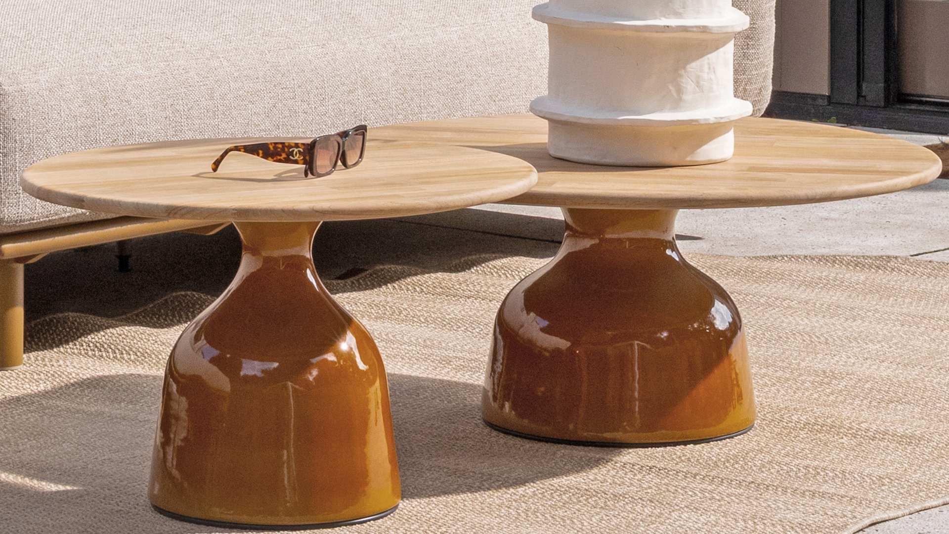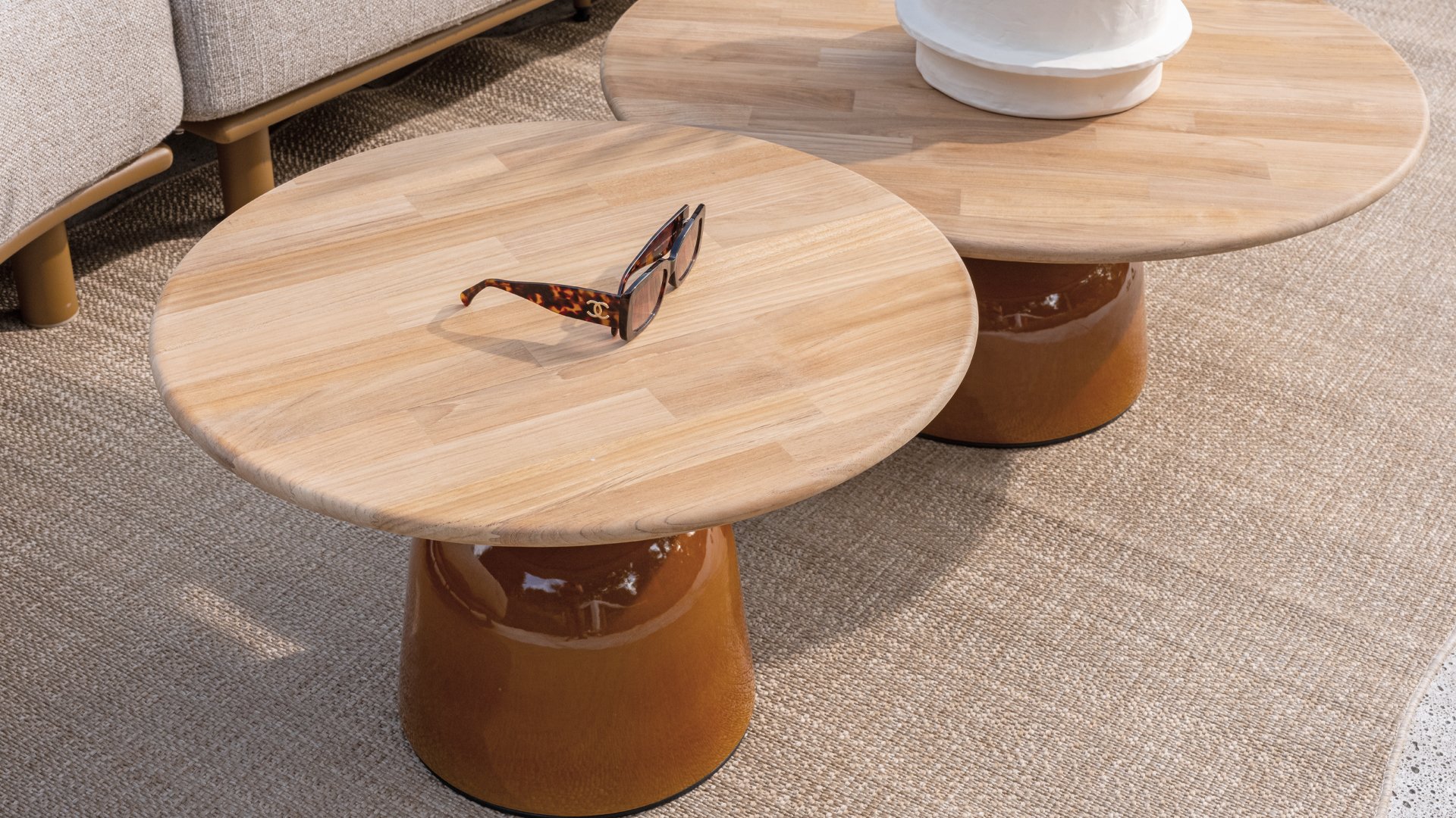 Die 4 Seasons Outdoor Couchtischserie June ist eine Ode an raffinierte Schlichtheit und natürlichen Luxus. Mit einer abgerundeten Teakholzplatte und einem markanten Hochglanz-Keramikfuß vereint June Wärme und einen modernen Touch in einem kraftvollen Design. Ein Keramikrahmen mit Hochglanzoberfläche strahlt Luxus und Raffinesse aus. Die glänzende Oberfläche verleiht einen tiefen, spiegelnden Glanz, der das Licht wunderschön reflektiert. Keramik ist von Natur aus hart, langlebig sowie hitze-, kratz- und feuchtigkeitsbeständig. Dank dieser Eigenschaften ist sie ideal für den Außenbereich geeignet und behält ihre Schönheit jahrelang bei minimalem Pflegeaufwand. Die Hochglanzoberfläche verstärkt die Farbe und verleiht dem Rahmen ein modernes, elegantes Aussehen. In Kombination mit natürlichen Materialien wie Holz entsteht ein stilvoller Kontrast, der zeitlos und modern zugleich wirkt. Erhältlich in drei Größen und zwei Farben: Caramel und Creme. So schaffen Sie ganz einfach eine dynamische Lounge-Atmosphäre, die stilvoll und funktional zugleich ist. June Caramel: Ø80cm, Ø60cm, Ø45cm. June Creme: Ø80cm, Ø60cm, Ø45cm.
