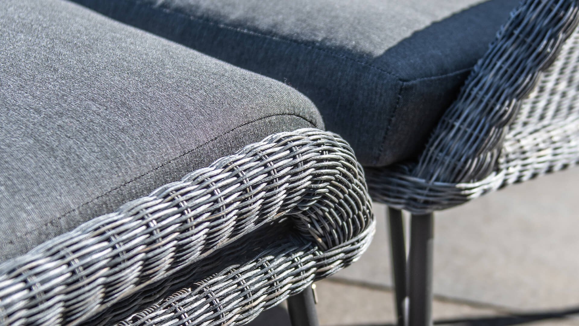 In unser 4Seasons Outdoor Samoa Serie sind die Gartenmöbel minimalistisch im Design mit funktionaler Schlichtheit und elegantem Design. Die schönen Rahmen sind aus Aluminium und die Beinen sind aus Edelstahl und haben eine anthrazit farbigen Pulverbeschichtung. In diesem Rahmen ist ein wunderschöner 2mm Ø dunnen Faser mit einem schicken und komfortablen naturlichen "feel andTouch" (Ecoloom) geflochten. Die runden Formen halten dieses moderne Design in Balance.