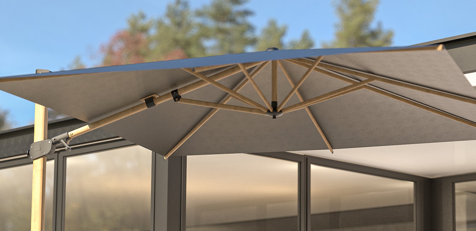 Wenn Sie Räder hinzufügen, ist der Schirm auch auf Ihrer Terrasse beweglich.
