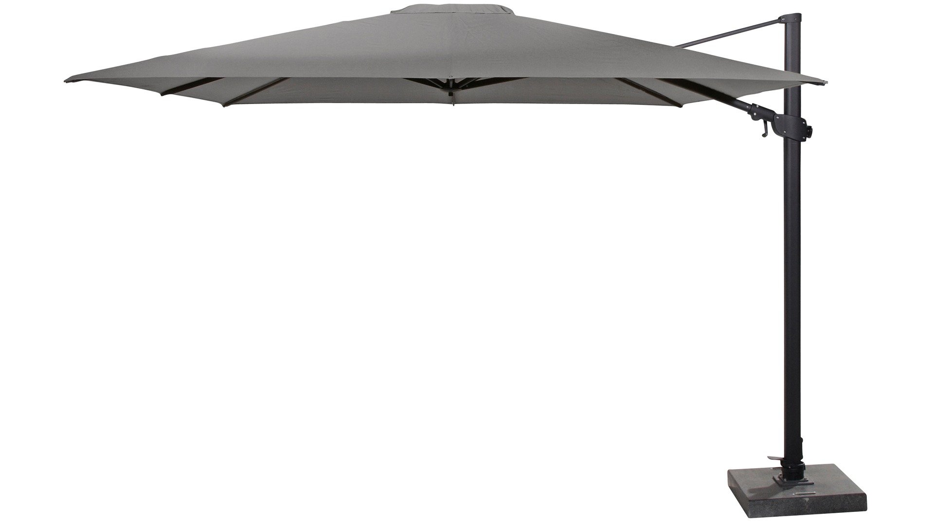 Jeder Ampelschirm von 4Seasons Outdoor kann auf dem Sockel gedreht und nach hinten geneigt werden, um die niedrige Sonne einzufangen.