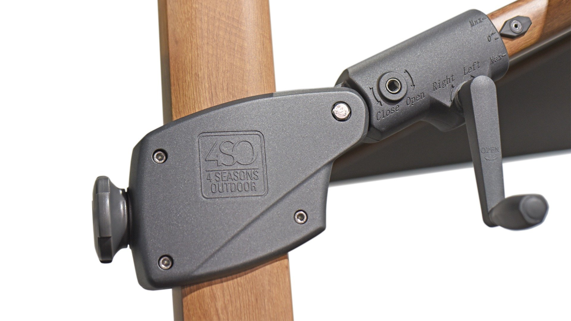 4Seasons Outdoor Siesta ist ein hochwertiger Schwebe-Parasol. Hergestellt aus einem Aluminiumrahmen steht er für hohe Qualität. Das Tuch besteht aus Solefin. Dieses Material zeichnet sich durch seine hohe Farbechtheit und Langlebigkeit aus. Standardmäßig 5 Jahre Garantie.