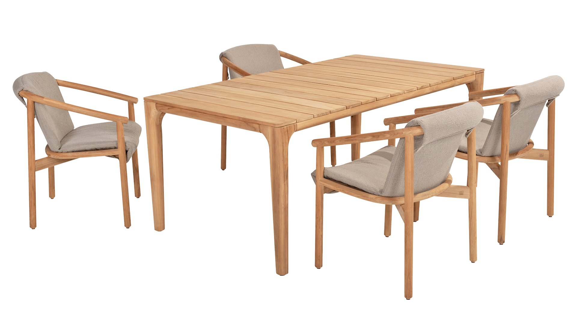 Mit dem Liam Tisch von Taste 4SO können Sie beim Essen im Freien den zeitlosen Charme und die Langlebigkeit von Teakholz genießen. Erhältlich in Vollteakholz und Teakkeramik: