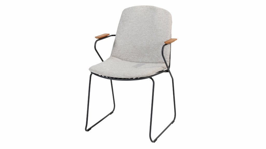 Es gibt nichts wie 4SO Veneto Einzigartig in seiner Art, der minimalistische Veneto Esszimmerstuhl aus dünnen Edelstahlrohren in den Farben Antraciet, Terre & Olive. Ein ergonomisches Design, Teakholzarmlehnen und das Kissen, das Sie leicht über die Rückenlehne schieben. Veneto ist auch stapelbar, wirklich ein Unikat-Esstuhl.