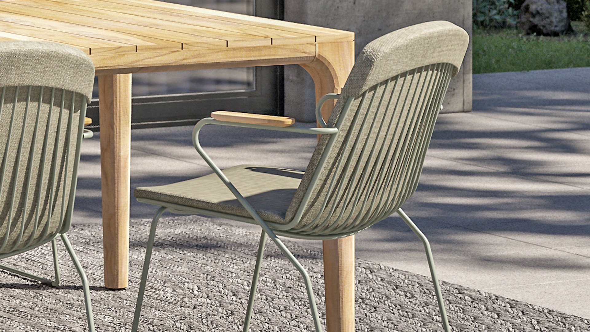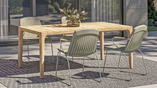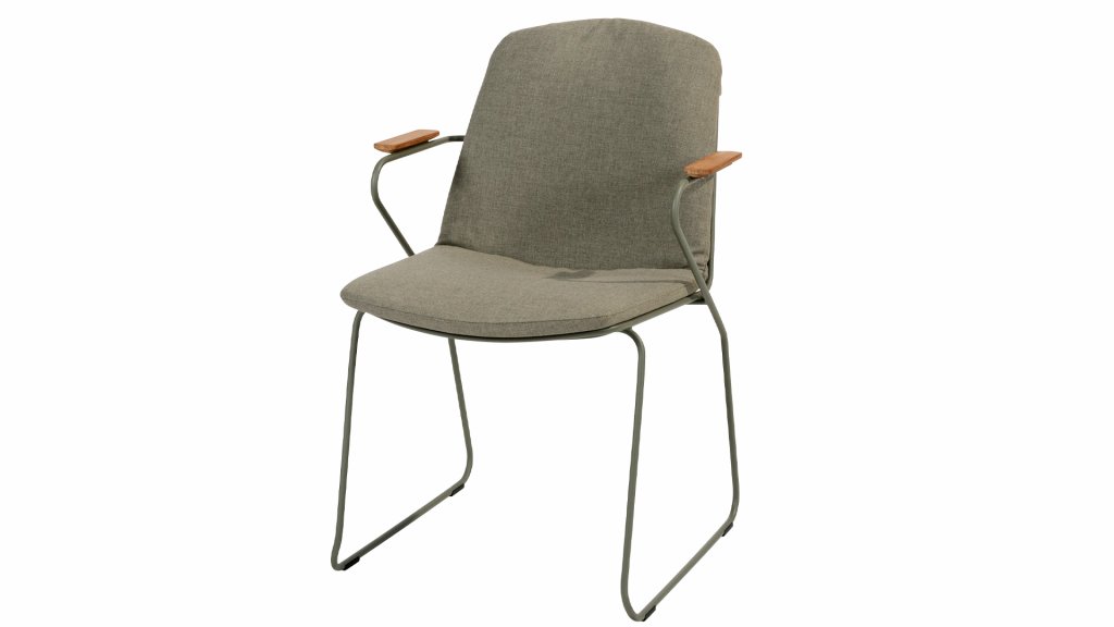 Es gibt nichts wie 4SO Veneto. Einzigartig in seiner Art, der minimalistische Veneto-Dining-Stuhl aus dünnen Edelstahlrohren ist in den Farben Anthrazit, Terre & Olive erhältlich. Ein ergonomisches Design, Teak-Armlehnen und das Kissen, das leicht über die Rückenlehne geschoben wird. Veneto ist auch stapelbar, wirklich ein einzigartiger Dining-Stuhl.