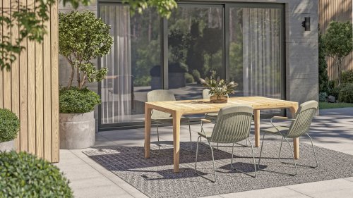 Gartenmöbel aus Teakholz bieten einen atemberaubenden Blick.Teakholz eignet sich besonders gut für den Einsatz im Außenbereich. Es ist resistent gegen Schädlinge und Pilze und widerstandsfähig gegen Sonne, Regen und Schnee. Mit der Zeit entwickelt das Teakholz eine silbergraue Patina. Gartenmöbel aus Teakholz bieten einen atemberaubenden Blick. Darüber hinaus ist es starkes Material und erfordert nur wenig Wartung. Wer die ursprüngliche Farbe des Teakholzes bevorzugt, kann durch regelmäßiges benutzen unser Pflegemittel ganz einfach das Vergrauen des Holzes verhindern.Darüber hinaus können Sie Teak mit grüner Seife reinigen. Durch Temperaturunterschiede und durch den Wechsel von Feuchtigkeit und Trockenheit können kleine Haarrisse entstehen. Es ist üblich, dass Man in dies Unvollkommenheiten findet, diese Unregelmäßigkeiten sind kennzeichnend für dieses Produkt. Diese Unregelmäßigkeiten können nie einen Anlass zu Reklamation, Garantie oder Claim formen. Es betrifft eine Unterschrift von Originalität!  Wir gewähren Garantie auf alle Produktions- und Konstruktionsfehler. Die Wirkung von Teakholz ist nicht enthalten. Wenn Sie sich für Teakholz entscheiden, erwarten wir, dass Sie diese Eigenschaften zu schätzen wissen. Eventuell auftretende Haarrisse, Äste im Teakholz und raue Oberflächen im Laufe der Zeit fallen nicht unter unsere Garantie. Diese Eigenschaften verleihen dem Teakholz seinen eigenen Charakter und sind Teil der Optik. Seien Sie vorsichtig mit einem Blumentopf oder einer Vase auf Ihrem Gartentisch aus Teakholz, da dies zu hartnäckigen Kreisen oder Farbunterschieden führen kann.