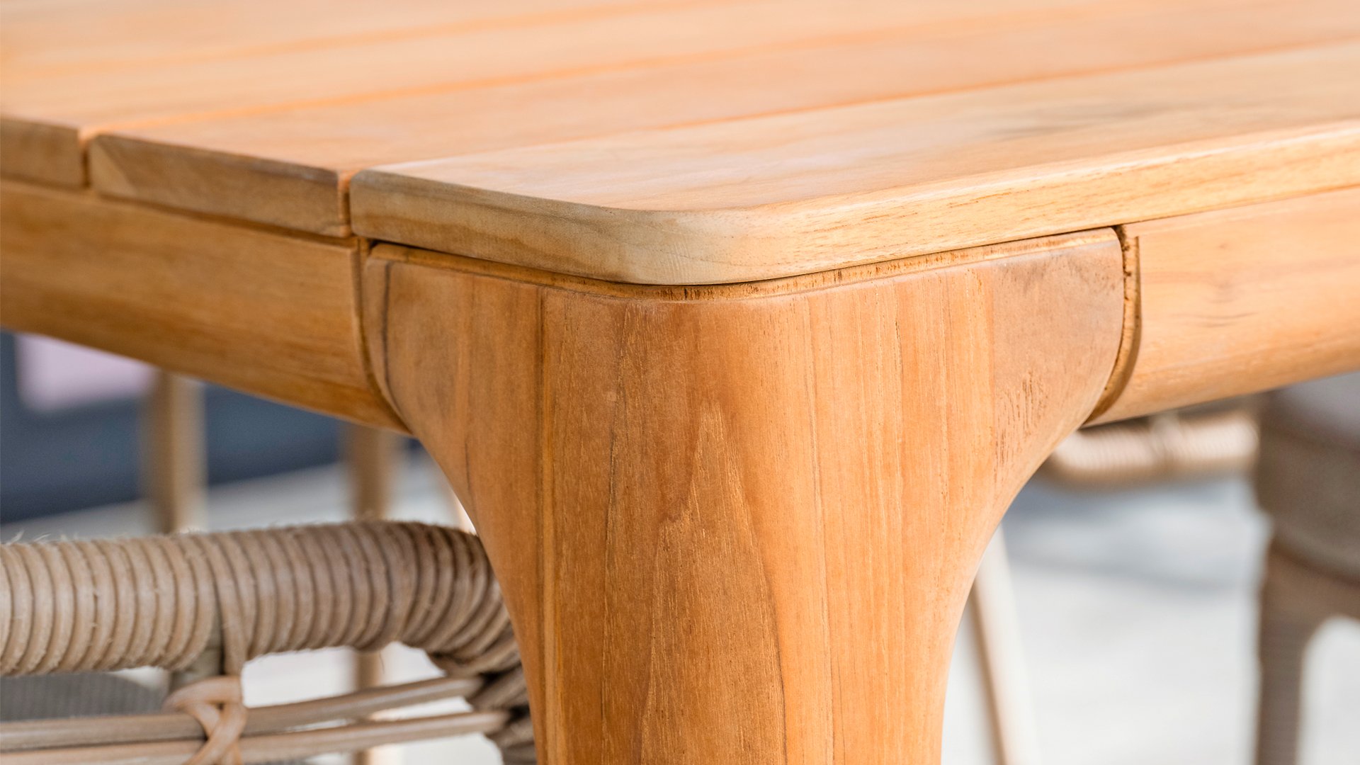 Der Liam-Tisch von Taste 4SO hat ein elegantes Design, das bei der Platzierung im Raum deutlich sichtbar ist. Die Tischplatte fällt dadurch auf, dass die Lamellen über die gesamte Breite reichen. Diese Tischplatte unterscheidet sich von den meisten anderen Tischen und sorgt für ein modernes und originelles Aussehen. Der Liam-Tisch hat ein schönes, elegantes Untergestell, das wunderbar zur Tischplatte passt. Der Tisch besteht vollständig aus Teakholz, kann das ganze Jahr über draußen stehen bleiben.