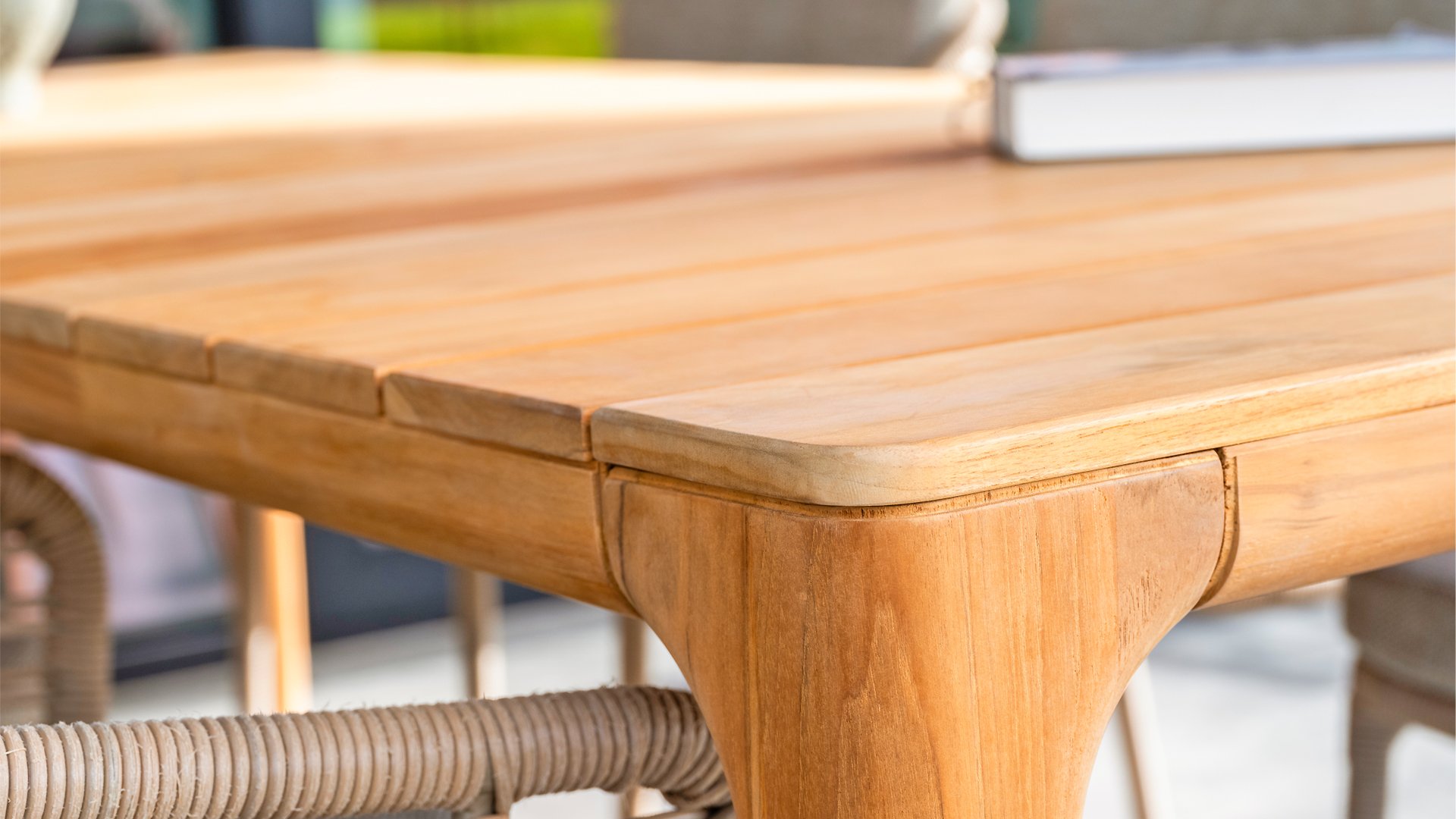 Mit dem Liam Tisch von Taste 4SO können Sie beim Essen im Freien den zeitlosen Charme und die Langlebigkeit von Teakholz genießen. Erhältlich in Vollteakholz und Teakkeramik: