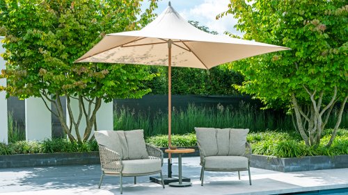 Genießen Sie den Sommer mit Vivenda. Ein wunderschöner Sonnenschirm mit einem cleveren System, um ihn mühelos zu öffnen und zu schließen. Vivenda hat ein einzigartiges Design und bietet dank des Solefin-Stoffs immer Schutz vor der Sonne. Der leichte Aluminiumrahmen hat einen einzigartigen Holzoptik-Druck in zwei Farben.