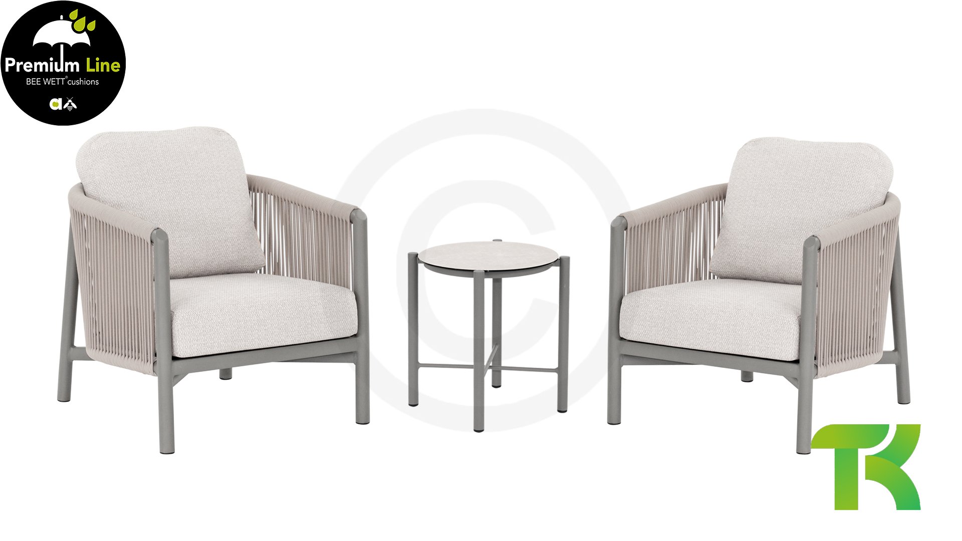 Bei Apple Bee verwenden wir Seil als hochwertiges Geflechtmaterial für unsere Outdoor-Möbel. Dieses speziell entwickelte Seil ist robust, langlebig, pflegeleicht, schnelltrocknend und UV-beständig, sodass es in der Sonne nicht ausbleicht. Seil besteht aus wasserabweisenden, weichen Fasern aus dem gleichen Material wie unsere Olefin-Gewebe, die um einen starken, PVC-beschichteten Polyesterkern gewebt sind. Dies sorgt für hervorragenden Komfort, auch ohne Kissen. Die Reinigung ist einfach: Lose Verschmutzungen entfernen, mit einem milden Reinigungsmittel und Wasser abwischen, gründlich abspülen und die Möbel vollständig trocknen lassen. Regelmäßige Pflege erhält den optimalen Zustand Ihrer Möbel.