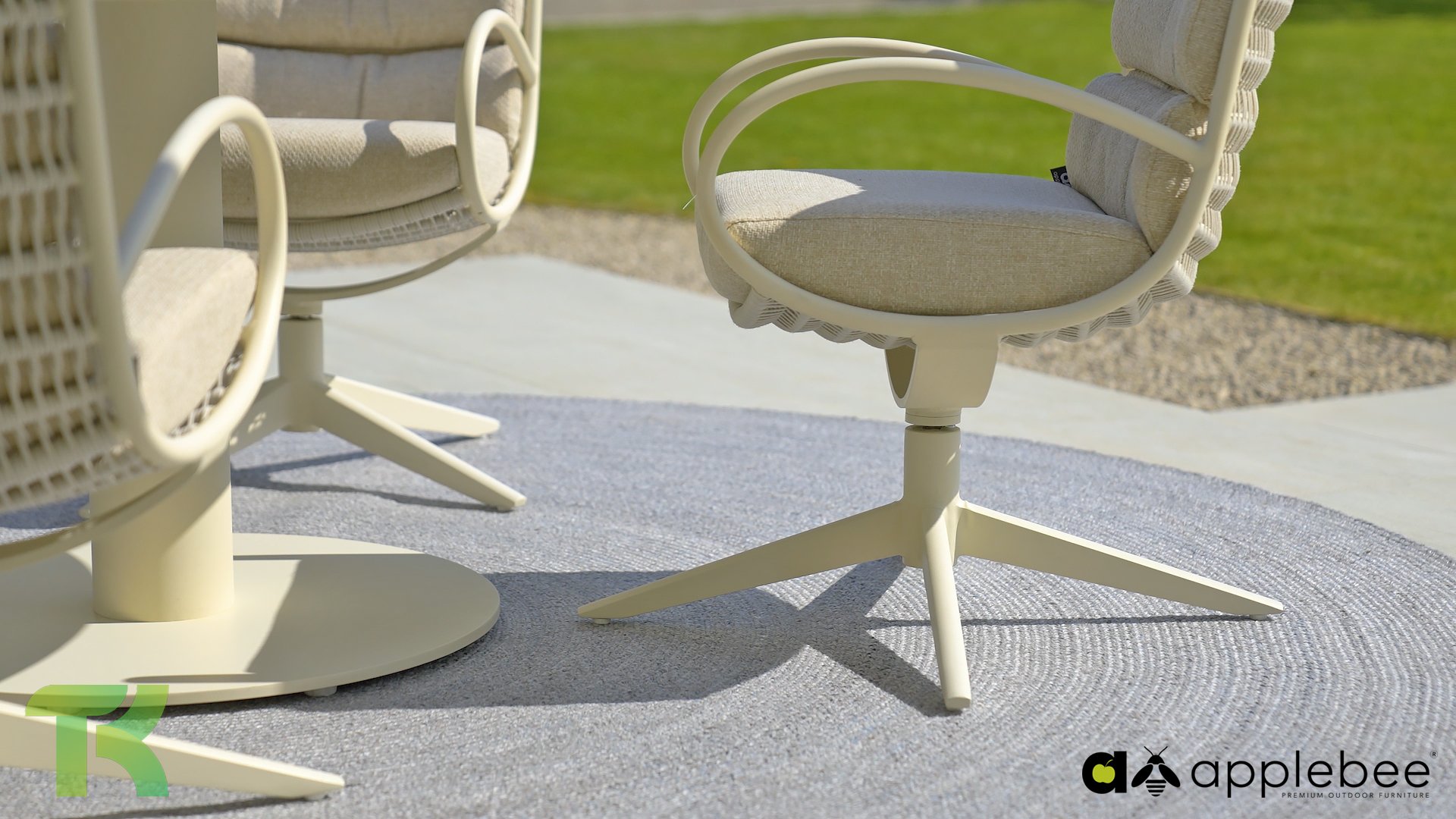 - Einzigartige BeeWett-Technologie: Das Set ist mit Kissen in warmem Cotton Flower ausgestattet. Dank der speziellen BeeWett-Technologie von Apple Bee sind diese Kissen feuchtigkeitsregulierend, trocknen schnell nach einem Regenschauer und sind UV-beständig.