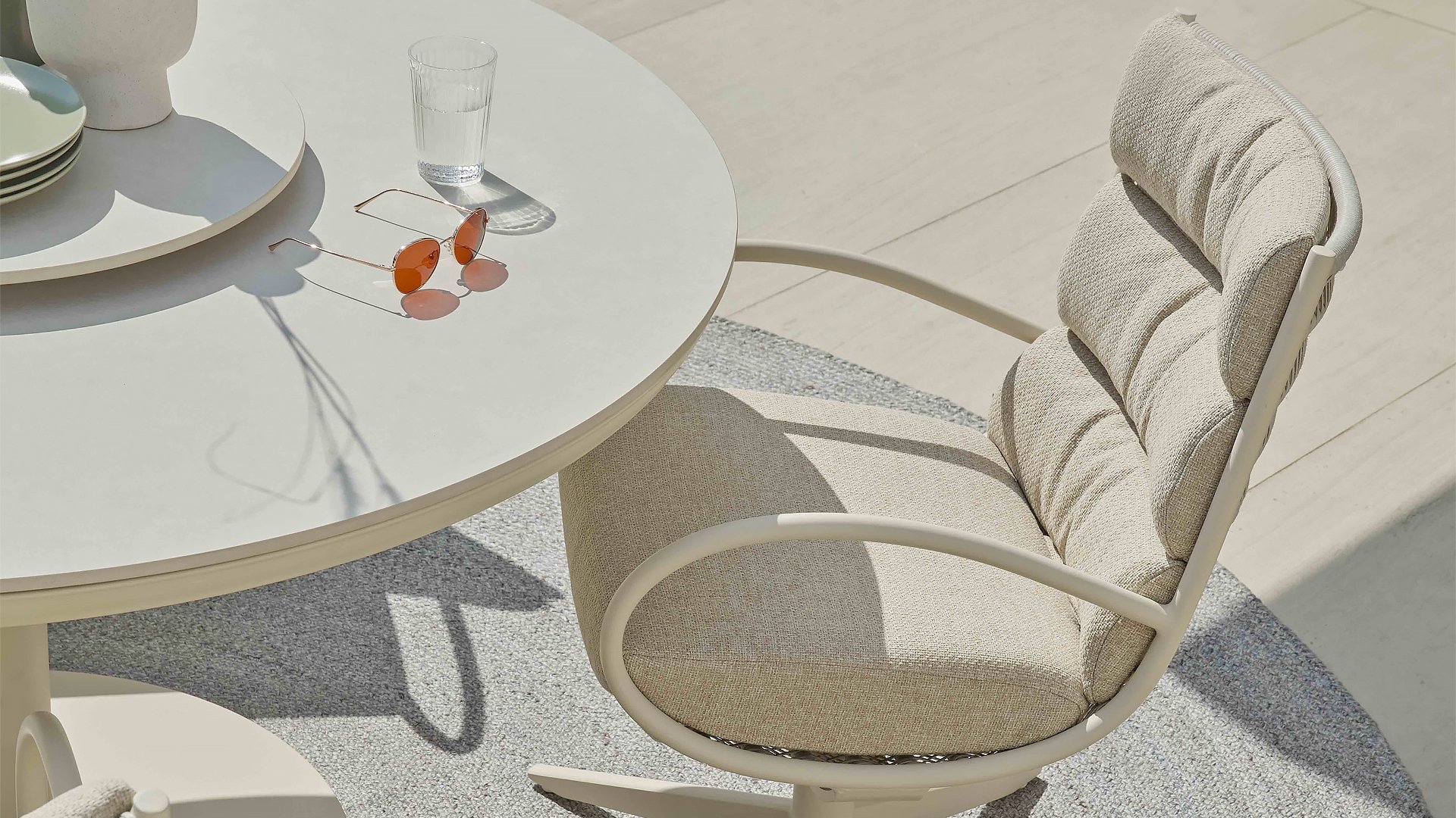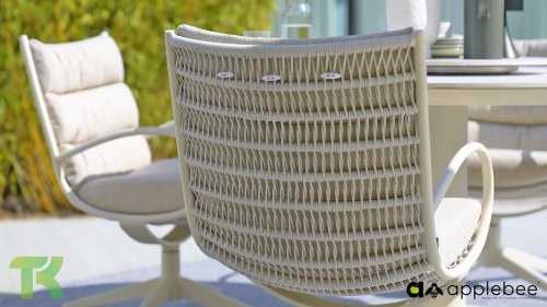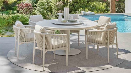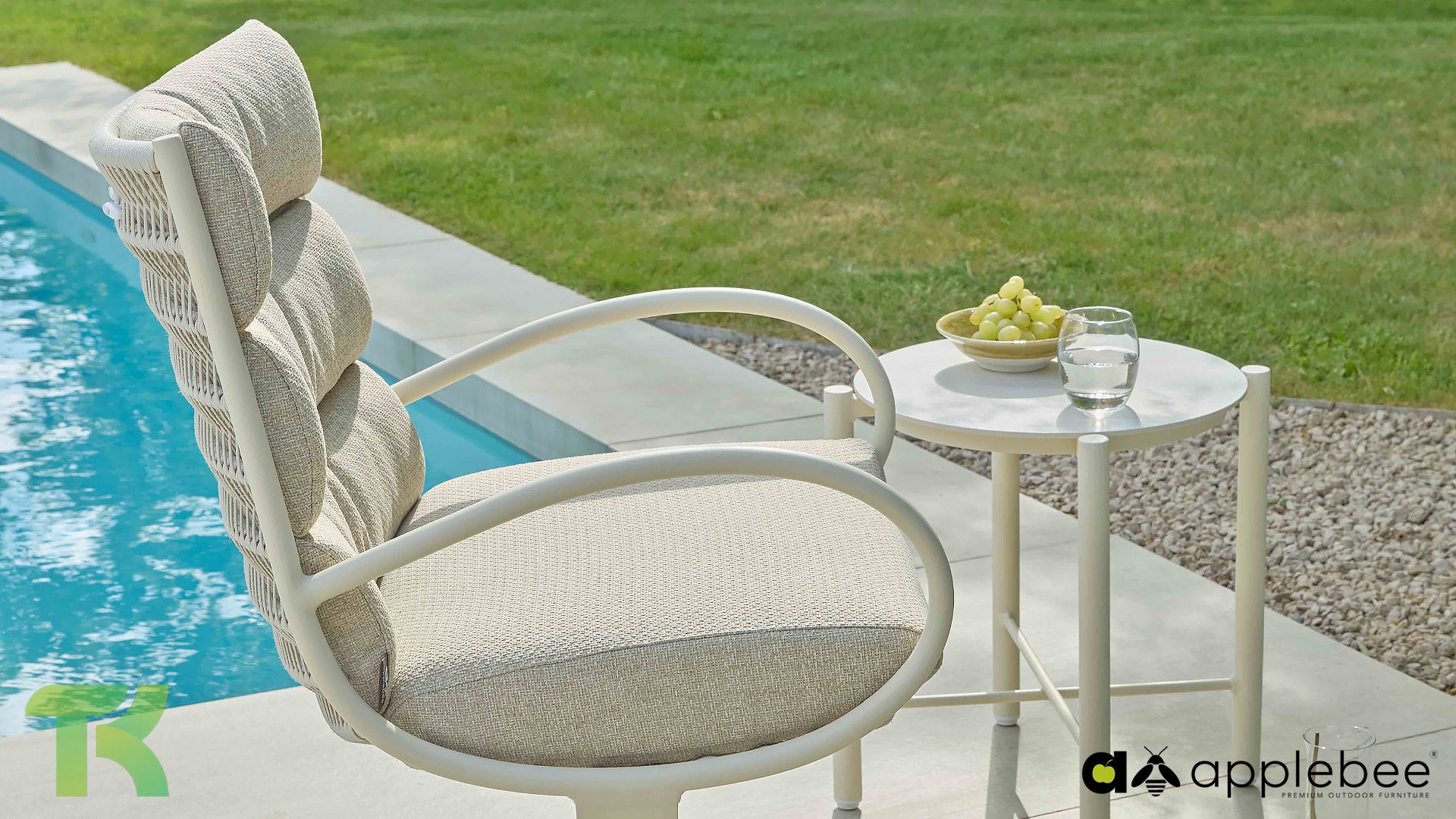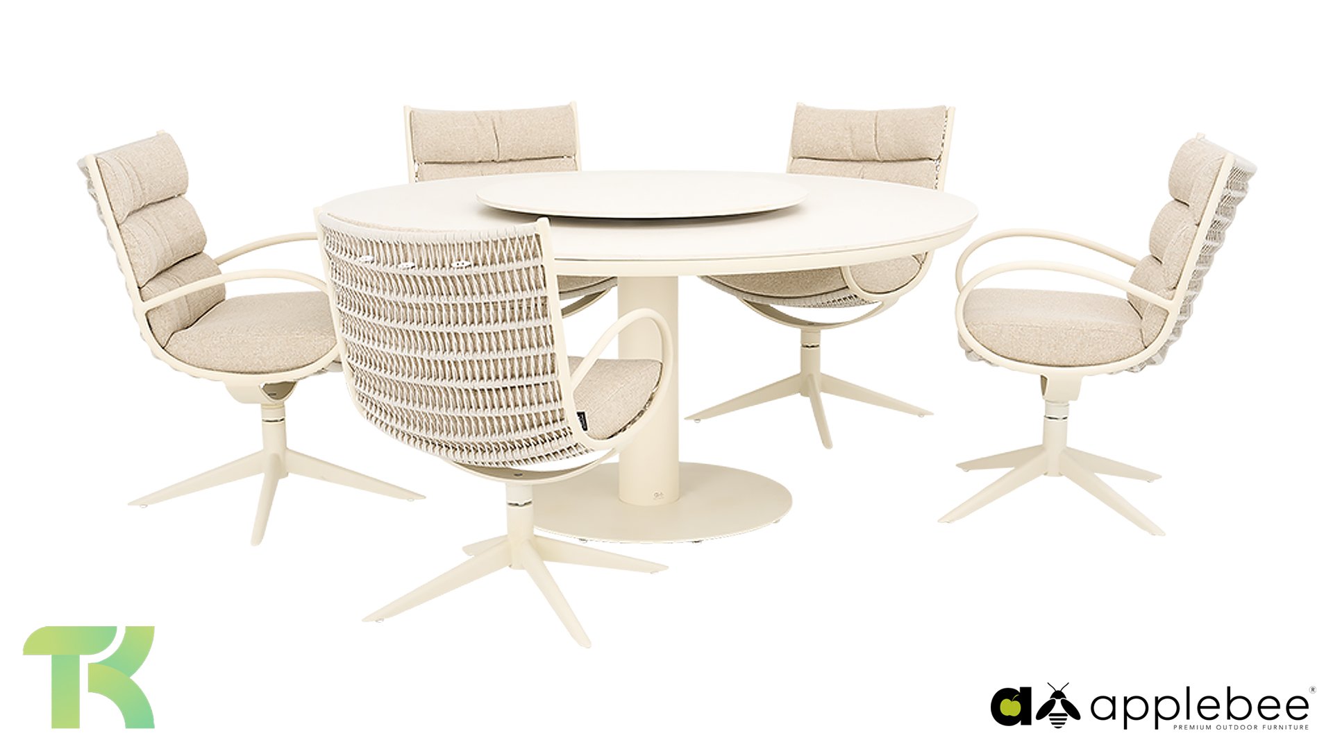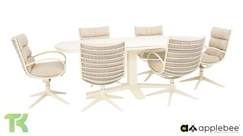 Sie möchten Ihre Terrasse in eine stilvolle Wohlfühloase im Freien verwandeln? Entdecken Sie die Camp Bay Oyster-Serie der Topmarke Apple Bee. Dieses Esszimmer-Set vereint eine elegante, helle Farbpalette mit durchdachter Funktionalität und bietet Ihnen so unvergleichlichen Komfort an langen Sommerabenden.