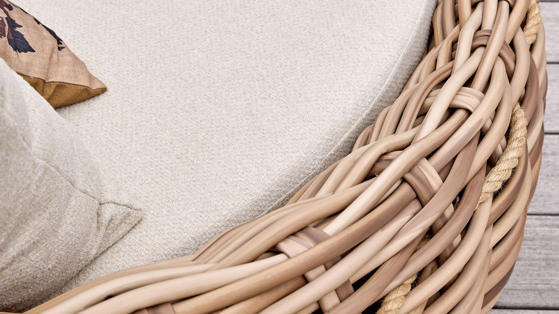 Vom sicheren, geschützten Kokon inspiriert, in dem sich eine Raupe in einen wunderschönen Schmetterling verwandelt. Schöne Cream Bouclé Loungekissen mit Bee Wett®-Technologie in Kombination mit dem außergewöhnlich dick geflochtenen Biculair®-Flechtdraht von stolzen 20 mm! Der Cocoon von Apple Bee ist Ihr eigenes geschütztes Plätzchen im Garten oder auf der Terrasse!