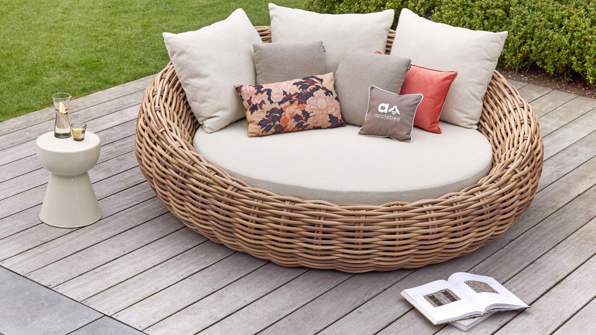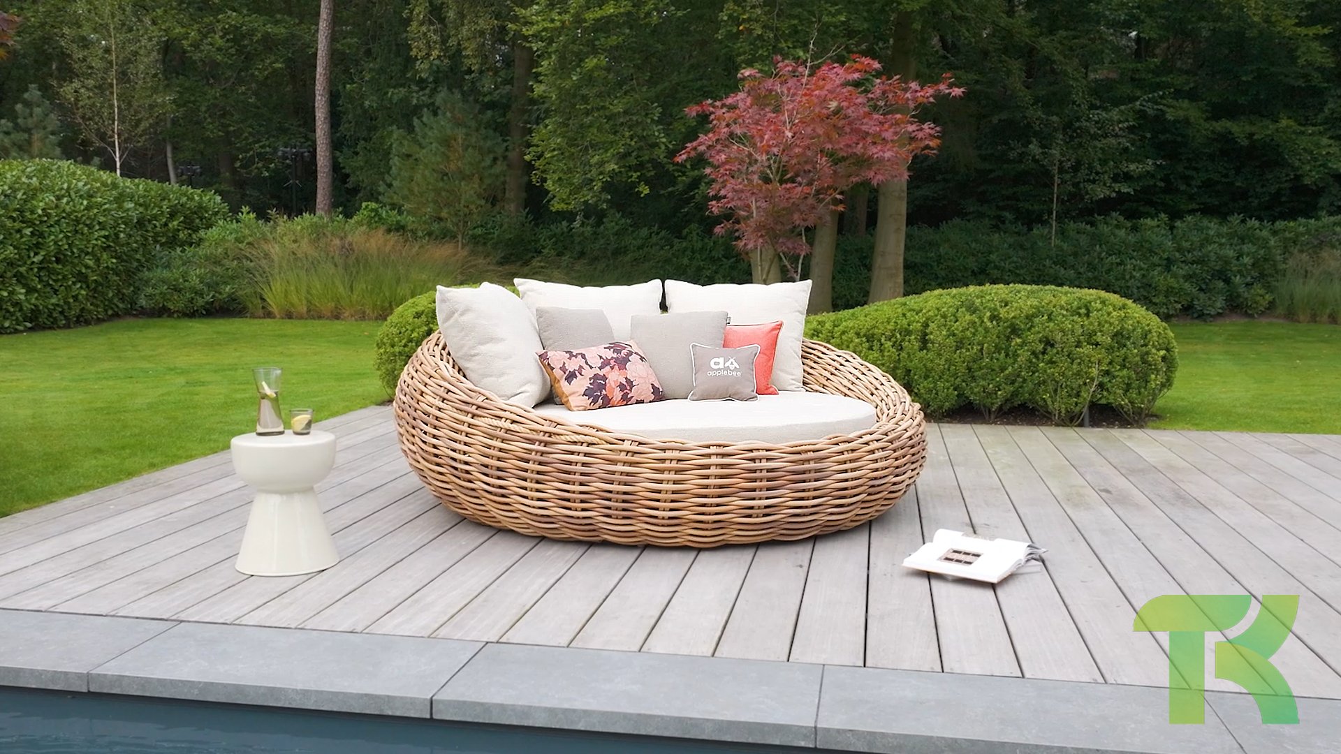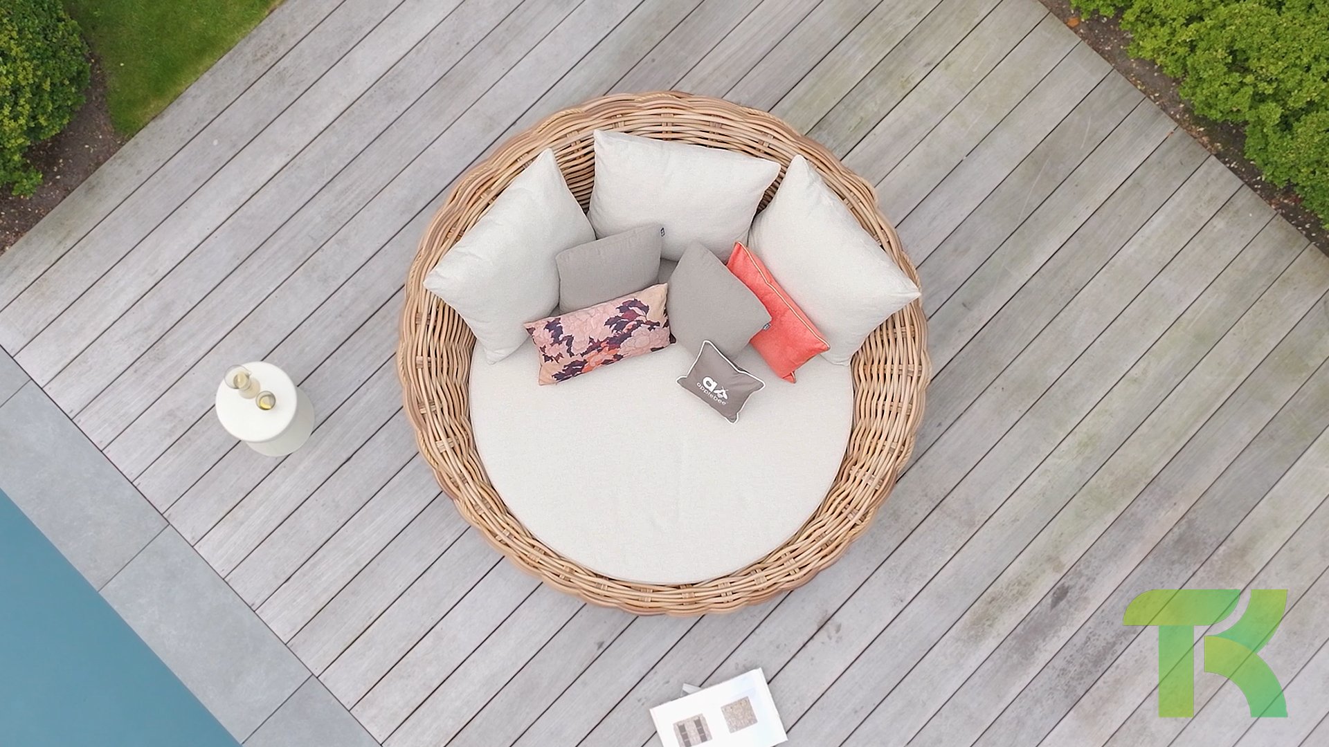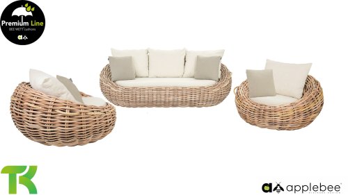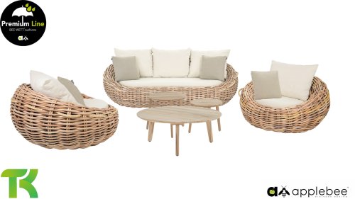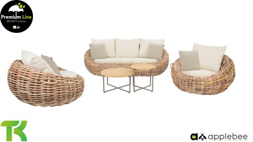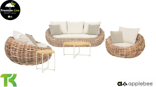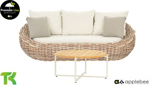Das Comeback! Nicht umsonst wurde der Apple Bee Cocoon Loungegruppe wieder in die Kollektion von Apple Bee aufgenommen, und diesmal in einem zeitgenössisch Look. Er ist noch immer inspiriert durch den sicheren Kokon, in dem sich eine Raupe geborgen fühlt und sich in einen wunderschönen Schmetterling verwandelt. Wunderschöne Cream Bouclé Loungekissen mit Bee-Wett®-Technologie in Kombination mit dem außergewöhnlich dicken geflochtenen Biculair®-Flechtfaden in 20mm Stärke. Immer noch in der typischen runden Form, die Sako Wijma beim ersten Cocoon-Design so schön umzusetzen wusste. Ihr eigenes, geborgenes Fleckchen im Garten oder auf der Terrasse.