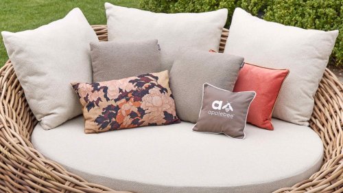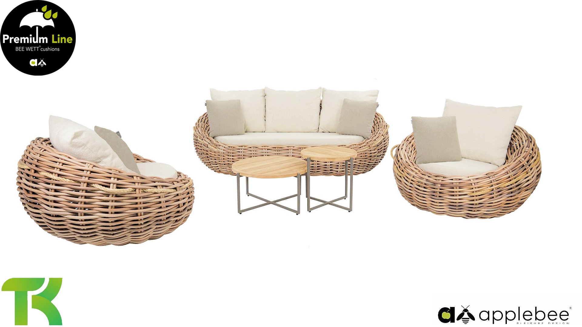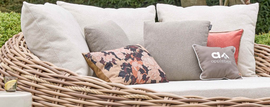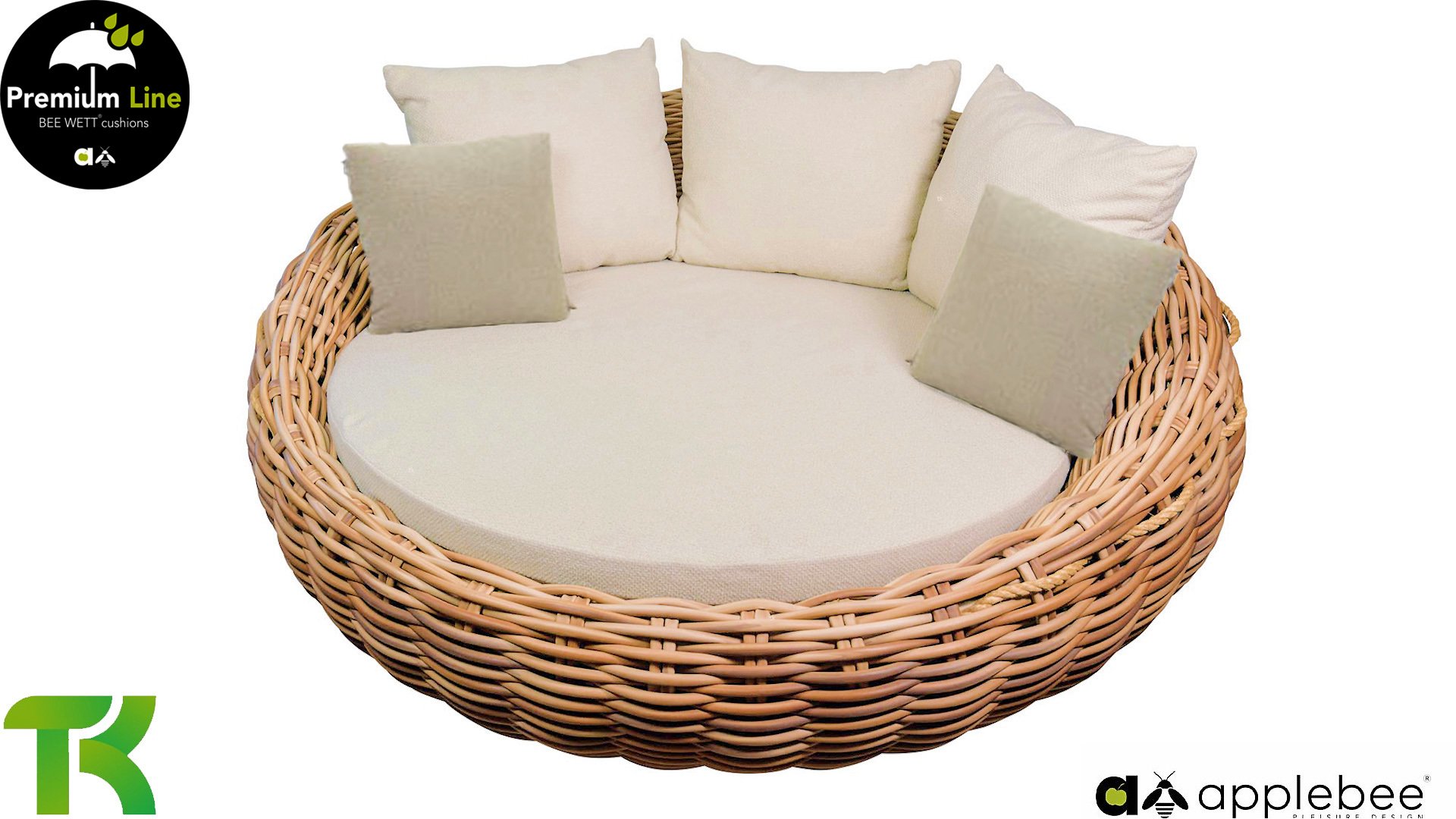 Apple Bee Möbel werden hergestellt aus den besten Materialien. Das gilt ebenso auch für die Kissen und Polster. Bee Wett sind spezielle wetterfeste Kissen die natürlich draussen liegen bleiben können. Die abnehmbaren Hüllen werden aus den bestenmöglichen Stoffen hergestellt und sind alle waschbar. Der Stoff ist zusätzlich wasserabstoßend und garantiert UV-beständig. Anders als bei dem gewöhnlichen Schaum nimmt die einzigartige Bee Wett Füllung keine Feuchtigkeit mehr auf. Eine offenes Gewebe an der Unterseite der Kissen sorgt für eine perfekte Drainage. Der Vorteil, dass die Bee Wett Kissen und Polster unglaublich viel schneller trocknen als vergleichbare andere Kissen. Das Bee Wett-Kissen wird mit einem Olefin Stoff bezogen, der eine gute Beständigkeit gegen Verfaulen und Stockflecken aufweist, und darüber hinaus UV-beständig, weich, komfortabel und feuchtigkeitsabstoßend ist.