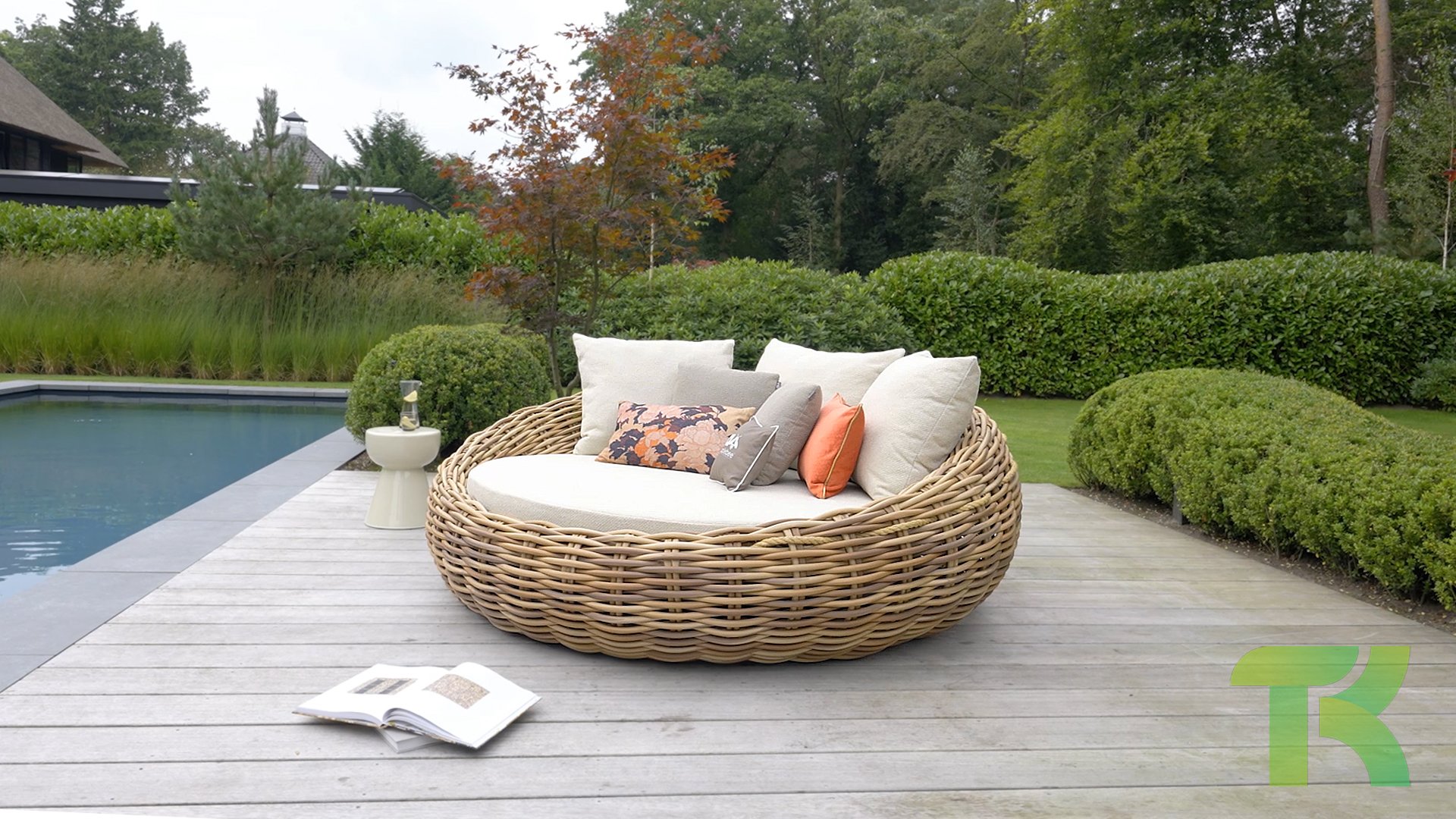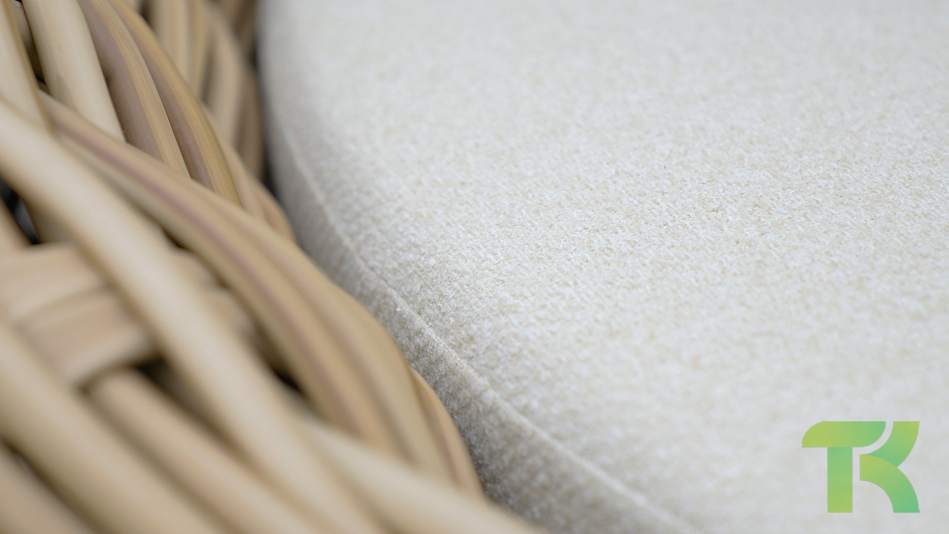 Der 20 mm dicke Flechtfaden wird von Hand und mit großem Aufwand fest um den Aluminiumrahmen geflochten. Apple Bee hat sich diese raffinierte Flechttechnik durch jahrelange Erfahrung und die Zusammenarbeit mit den erfahrensten Flechtexperten angeeignet. Der Designer will mit dem neuen Flechtfaden die Idee von geflochtenen Rattanstäben vermitteln. Das geflochtene Sisalseil verleiht dem Apple Bee Cocoon nicht nur seinen einzigartigen Charakter, sondern ist auch sehr praktisch, um das Möbelstück leicht zu bewegen. Der Lounge Cocoon ist buchstäblich der Evergreen von Apple Bee!