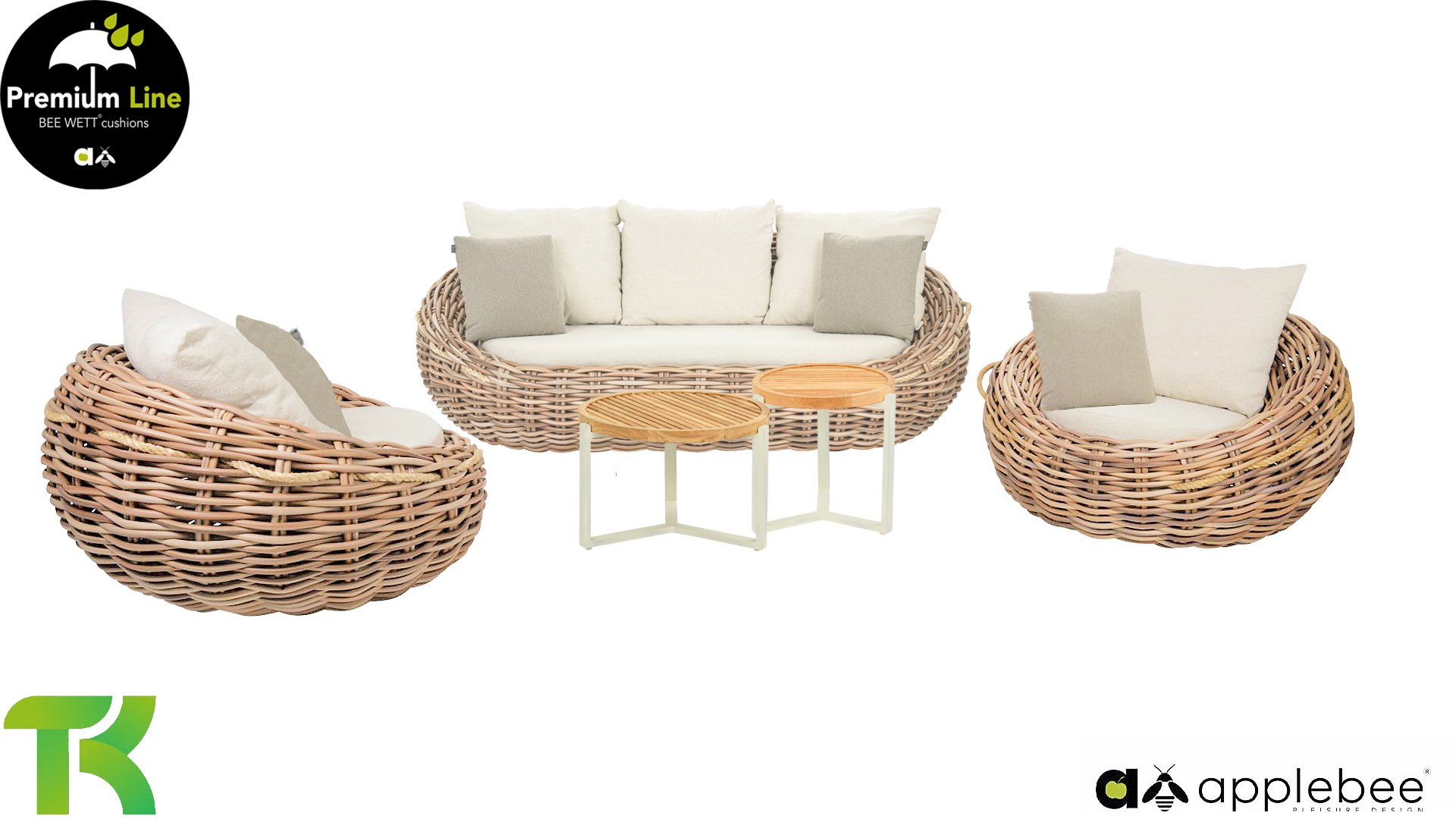Apple Bee zeichnet sich durch die Verwendung des speziellen Biculair®-Geflechts aus, das ursprünglich für den professionellen Einsatz im Gastgewerbe entwickelt wurde. Dieses Biculair®-Geflecht ist eine naturgetreue und nachhaltige Alternative zu Rattan. Die äußerst strapazierfähige synthetische Rattanfaser (HDPE) ist absolut wetterfest, farbecht, recycelbar und somit eine umweltfreundliche Wahl. Aussehen und Funktionalität der Möbel bleiben von den europäischen Witterungsbedingungen unbeeinträchtigt, und die Farben behalten ihre natürliche Leuchtkraft. Die überlegene Qualität dieses Geflechts, bestätigt von der Niederländischen Organisation für Angewandte Naturwissenschaftliche Forschung (TNO), zeigt sich deutlich im Vergleich zu anderen vergleichbaren Materialien.
