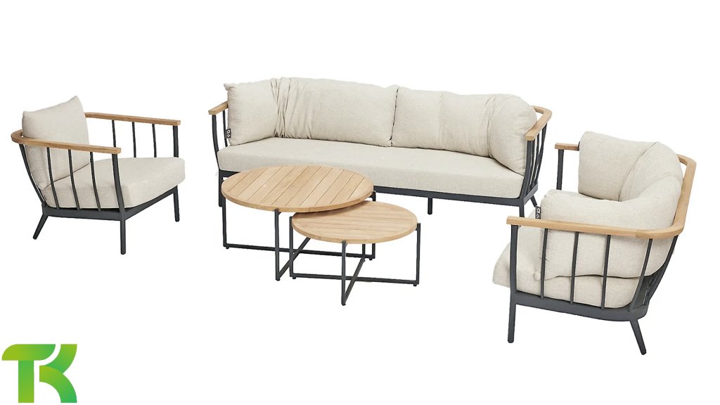| Materialien Loungegruppe | Teak, Pulverbeschichtet Aluminium/Stahl |
