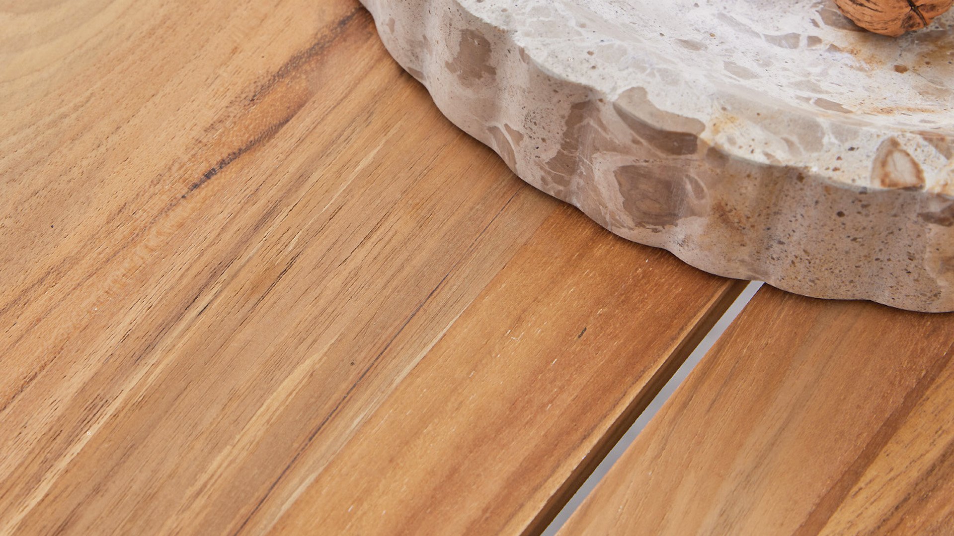 Gartenmöbel aus Teakholz bieten einen atemberaubenden Blick.Teakholz eignet sich besonders gut für den Einsatz im Außenbereich. Es ist resistent gegen Schädlinge und Pilze und widerstandsfähig gegen Sonne, Regen und Schnee. Mit der Zeit entwickelt das Teakholz eine silbergraue Patina. Gartenmöbel aus Teakholz bieten einen atemberaubenden Blick. Darüber hinaus ist es starkes Material und erfordert nur wenig Wartung. Wer die ursprüngliche Farbe des Teakholzes bevorzugt, kann durch regelmäßiges benutzen unser Pflegemittel ganz einfach das Vergrauen des Holzes verhindern.Darüber hinaus können Sie Teak mit grüner Seife reinigen. Durch Temperaturunterschiede und durch den Wechsel von Feuchtigkeit und Trockenheit können kleine Haarrisse entstehen. Es ist üblich, dass Man in dies Unvollkommenheiten findet, diese Unregelmäßigkeiten sind kennzeichnend für dieses Produkt. Diese Unregelmäßigkeiten können nie einen Anlass zu Reklamation, Garantie oder Claim formen. Es betrifft eine Unterschrift von Originalität! Wir gewähren Garantie auf alle Produktions- und Konstruktionsfehler. Die Wirkung von Teakholz ist nicht enthalten. Wenn Sie sich für Teakholz entscheiden, erwarten wir, dass Sie diese Eigenschaften zu schätzen wissen. Eventuell auftretende Haarrisse, Äste im Teakholz und raue Oberflächen im Laufe der Zeit fallen nicht unter unsere Garantie. Diese Eigenschaften verleihen dem Teakholz seinen eigenen Charakter und sind Teil der Optik. Seien Sie vorsichtig mit einem Blumentopf oder einer Vase auf Ihrem Gartentisch aus Teakholz, da dies zu hartnäckigen Kreisen oder Farbunterschieden führen kann.