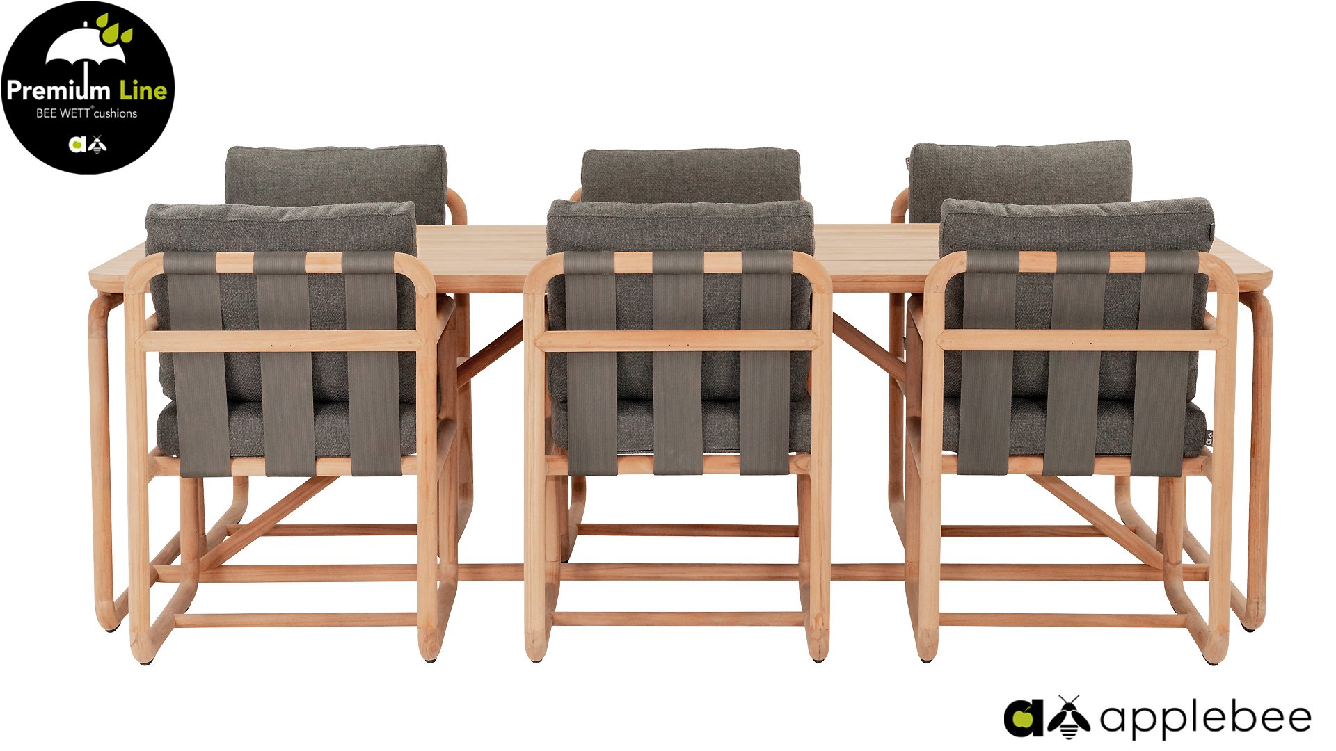 AppleBee BEE WETT sind spezielle wetterfeste Kissen die natürlich draussen liegen bleiben können. Die abnehmbaren Hüllen werden aus den bestenmöglichen Stoffen hergestellt und sind alle waschbar auf 30°. Der Stoff ist zusätzlich wasserabstoßend  und garantiert UV-beständig. Eine offenes Gewebe an der Unterseite der Kissen sorgt für eine perfekte Drainage. Der Vorteil, dass die BEE WETT Kissen und Polster unglaublich viel schneller trocknen als vergleichbare andere Kissen. Das Stoff hat eine gute Beständigkeit gegen Verfaulen und Stockflecken und darüber hinaus UV-beständig, weich, komfortabel und feuchtigkeitsabstoßend ist. Die Polster sind ausziehbar und waschbar.