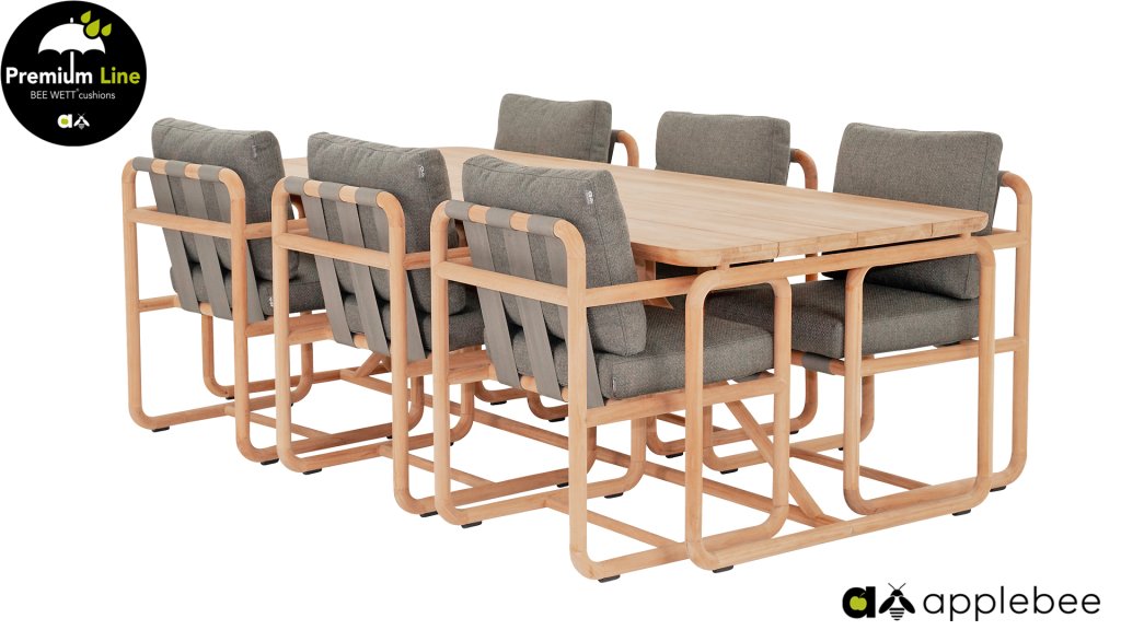 Gartenmöbel aus Teakholz bieten einen atemberaubenden Blick.Teakholz eignet sich besonders gut für den Einsatz im Außenbereich. Es ist resistent gegen Schädlinge und Pilze und widerstandsfähig gegen Sonne, Regen und Schnee. Mit der Zeit entwickelt das Teakholz eine silbergraue Patina. Gartenmöbel aus Teakholz bieten einen atemberaubenden Blick. Darüber hinaus ist es starkes Material und erfordert nur wenig Wartung. Wer die ursprüngliche Farbe des Teakholzes bevorzugt, kann durch regelmäßiges benutzen unser Pflegemittel ganz einfach das Vergrauen des Holzes verhindern.Darüber hinaus können Sie Teak mit grüner Seife reinigen. Durch Temperaturunterschiede und durch den Wechsel von Feuchtigkeit und Trockenheit können kleine Haarrisse entstehen. Es ist üblich, dass Man in dies Unvollkommenheiten findet, diese Unregelmäßigkeiten sind kennzeichnend für dieses Produkt. Diese Unregelmäßigkeiten können nie einen Anlass zu Reklamation, Garantie oder Claim formen. Es betrifft eine Unterschrift von Originalität!  Wir gewähren Garantie auf alle Produktions- und Konstruktionsfehler. Die Wirkung von Teakholz ist nicht enthalten. Wenn Sie sich für Teakholz entscheiden, erwarten wir, dass Sie diese Eigenschaften zu schätzen wissen. Eventuell auftretende Haarrisse, Äste im Teakholz und raue Oberflächen im Laufe der Zeit fallen nicht unter unsere Garantie. Diese Eigenschaften verleihen dem Teakholz seinen eigenen Charakter und sind Teil der Optik. Seien Sie vorsichtig mit einem Blumentopf oder einer Vase auf Ihrem Gartentisch aus Teakholz, da dies zu hartnäckigen Kreisen oder Farbunterschieden führen kann.